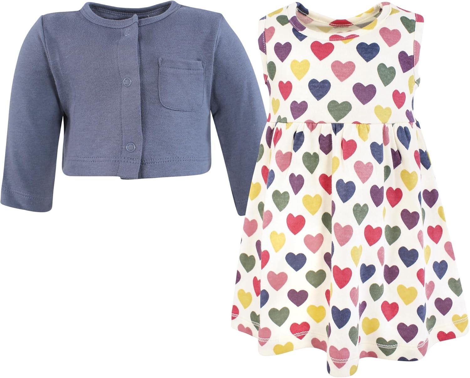 Hudson Baby Infant and Toddler Girls Cotton Dress and Cardigan Set(Indigo Hearts)