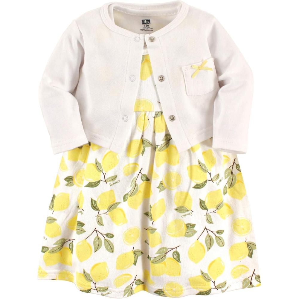 Hudson Baby Infant and Toddler Girls Cotton Dress and Cardigan Set(Lemon)
