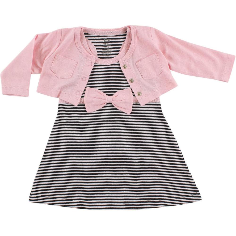 Hudson Baby Infant and Toddler Girls Cotton Dress and Cardigan Set(Light Pink Black)