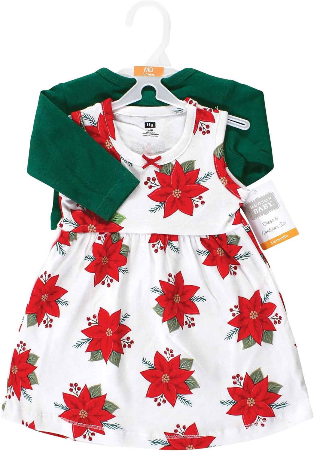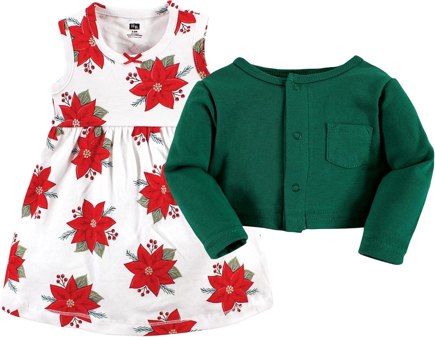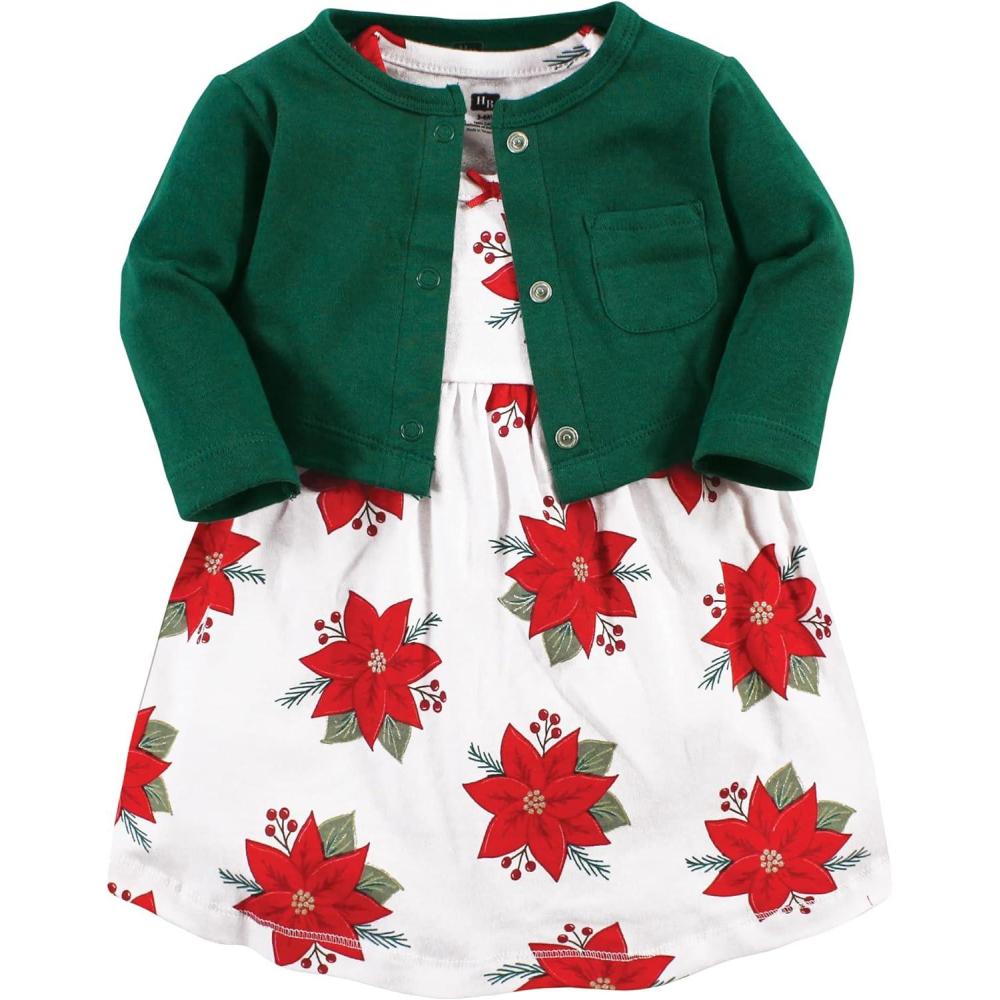 Hudson Baby dress and cardigan set is the cutest fashion outfit for your baby and toddler girl. Both dress and cardigan are made from super soft 100% interlock cotton. Our dress will keep your little feeling free and cool while the cardigan offers long sleeves for added warmth when needed. Our cardigan comes with snap closure for easy on and off.
