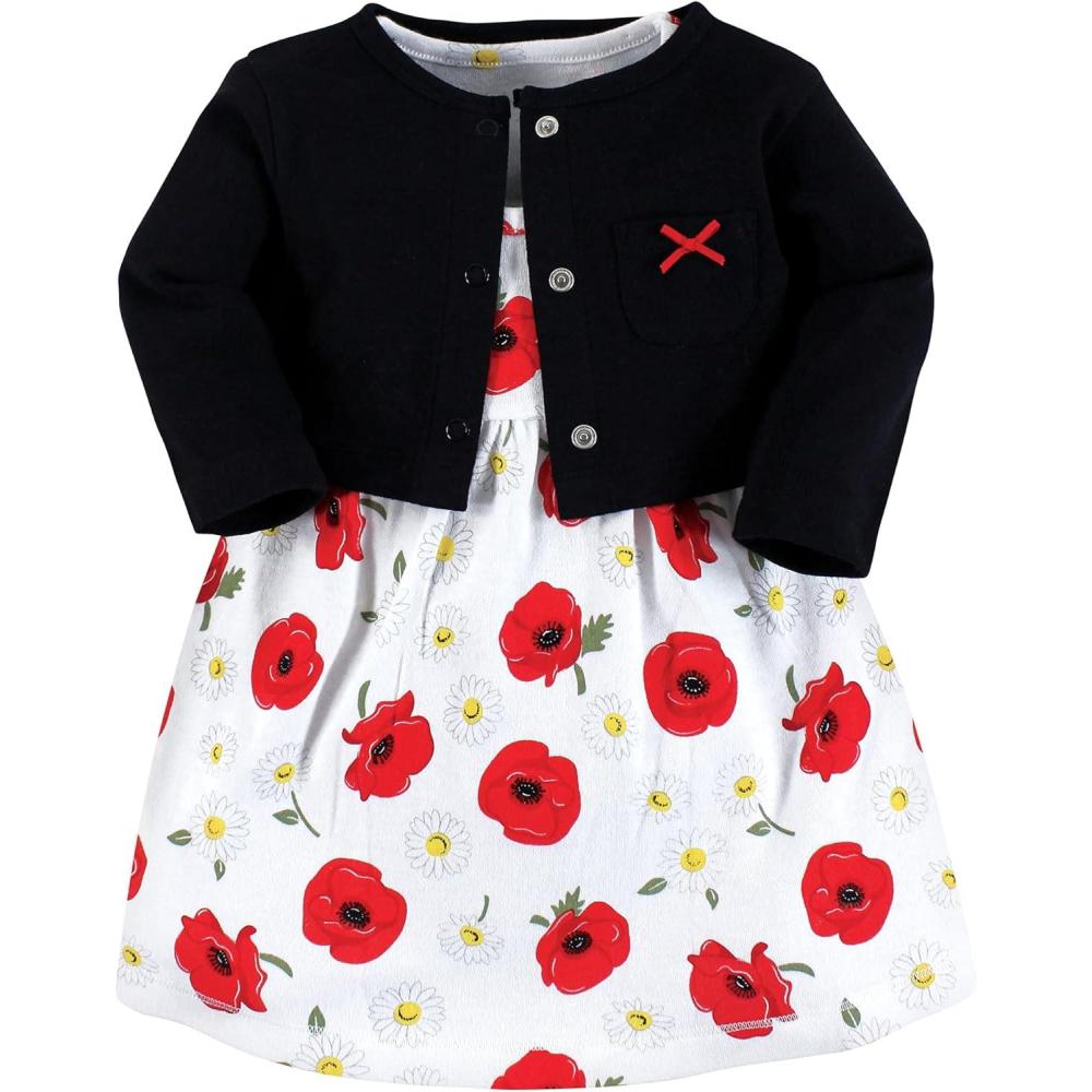Hudson Baby Infant and Toddler Girls Cotton Dress and Cardigan Set(Poppy Daisy)
