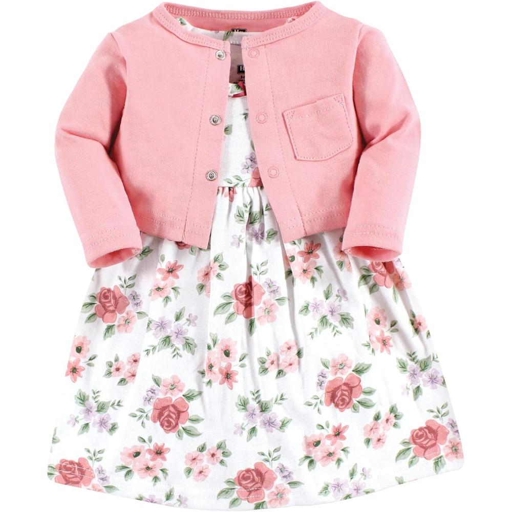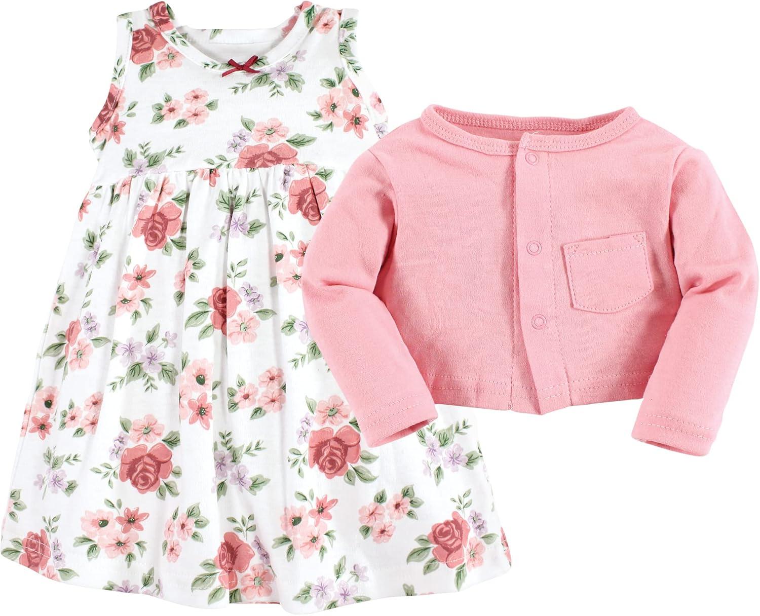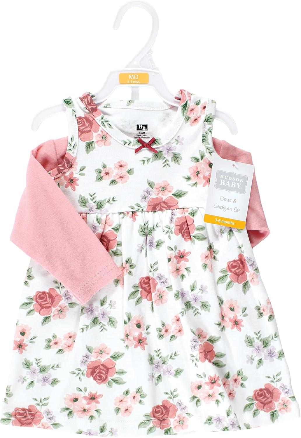 Hudson Baby Infant and Toddler Girls Cotton Dress and Cardigan Set(Vintage Floral)