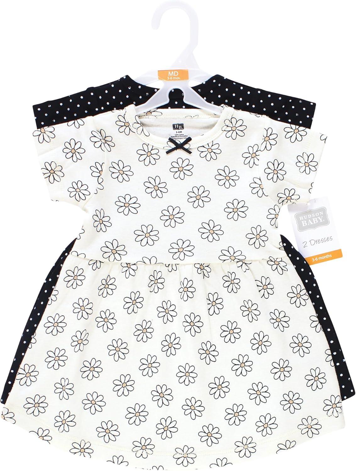 Hudson Baby Infant and Toddler Girls Cotton Dresses(Neutral Daisy)