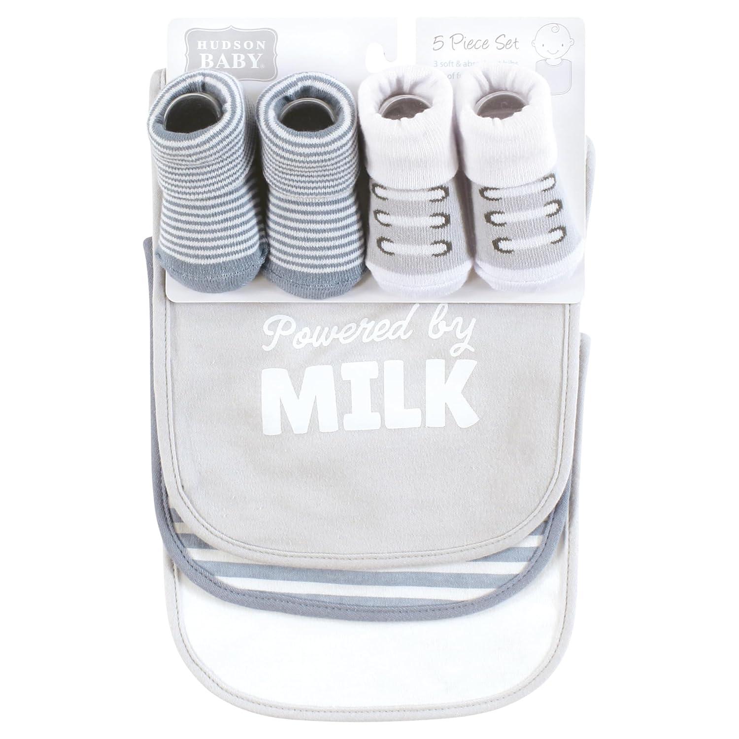 Hudson Baby bib and socks set are an adorable accessory set for fashionable matching bibs and socks. Each set features fun, cute bibs and socks made with coordinating fun, stylish prints. Our accessory set is a great baby shower gift.