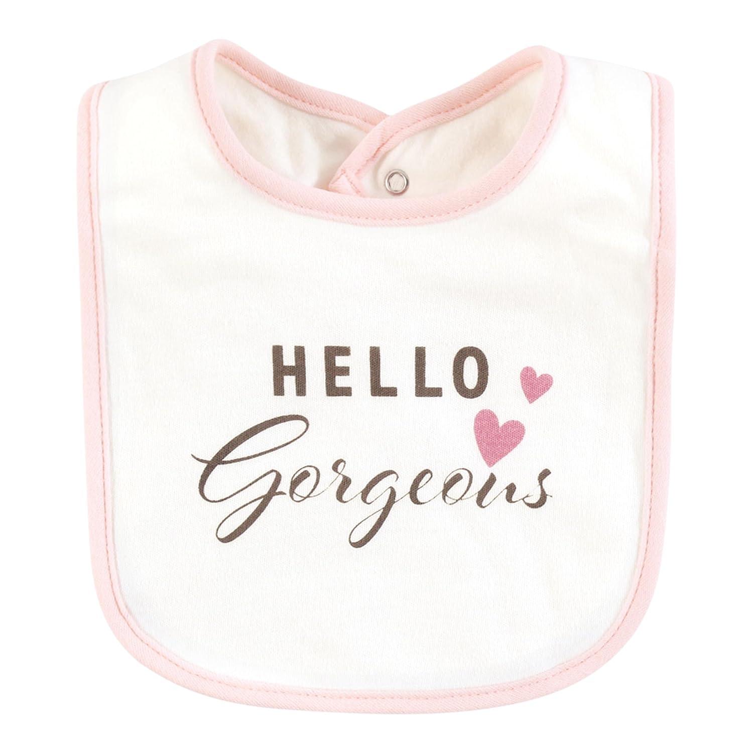 Hudson Baby interlock cotton drooler bibs are fashionable baby bibs made with two layers of soft, gentle cotton. Our bibs feature cute prints and embroideries and are great fashion bibs over baby's clothes to keep their outfits clean. Our bibs are great for drooling, feeding and more.