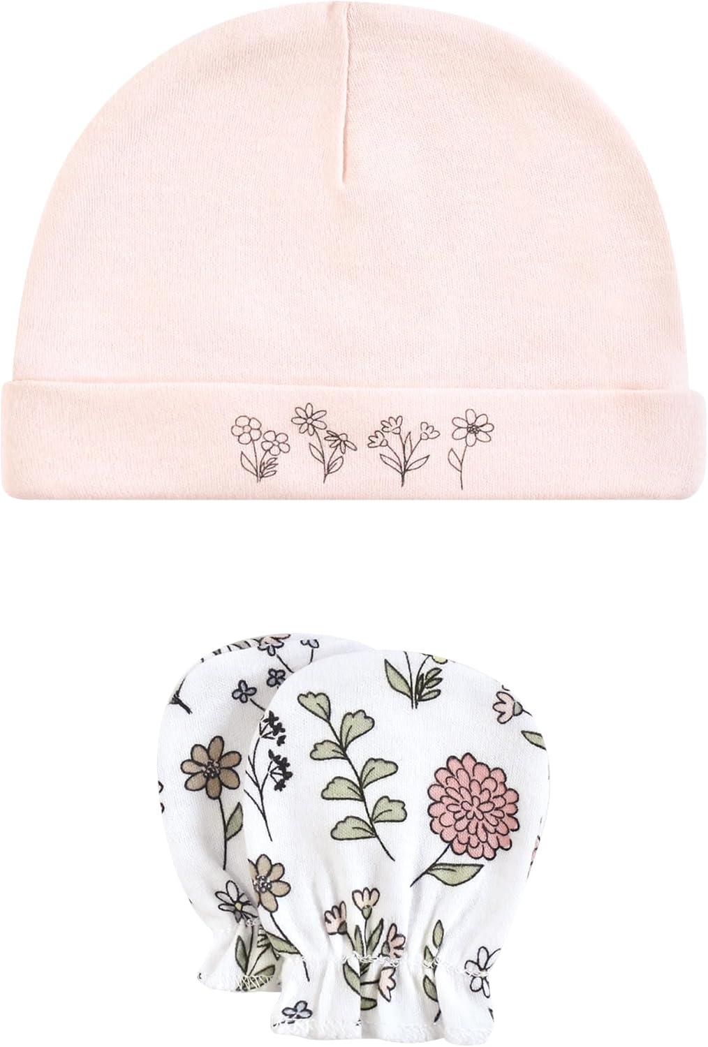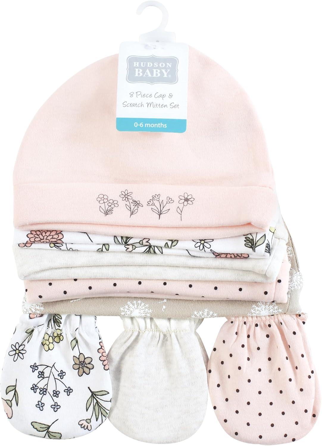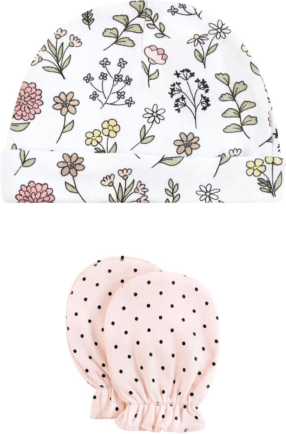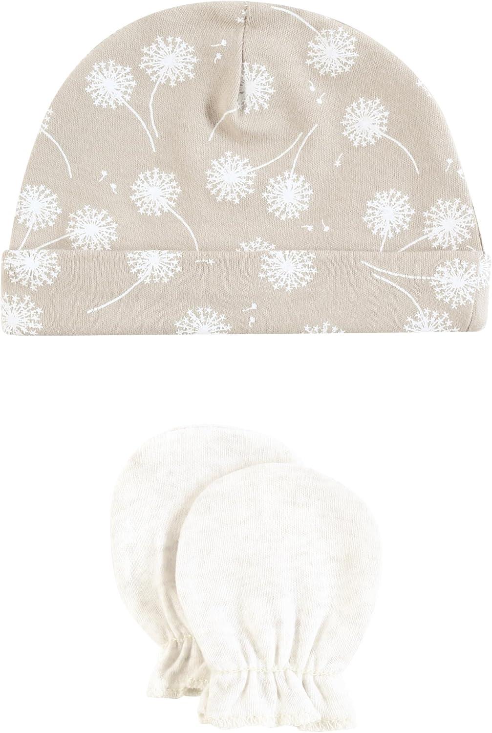 Hudson Baby Infant Girl Cotton Cap and Scratch Mitten Set, Dandelion Wish, 0-6 Months