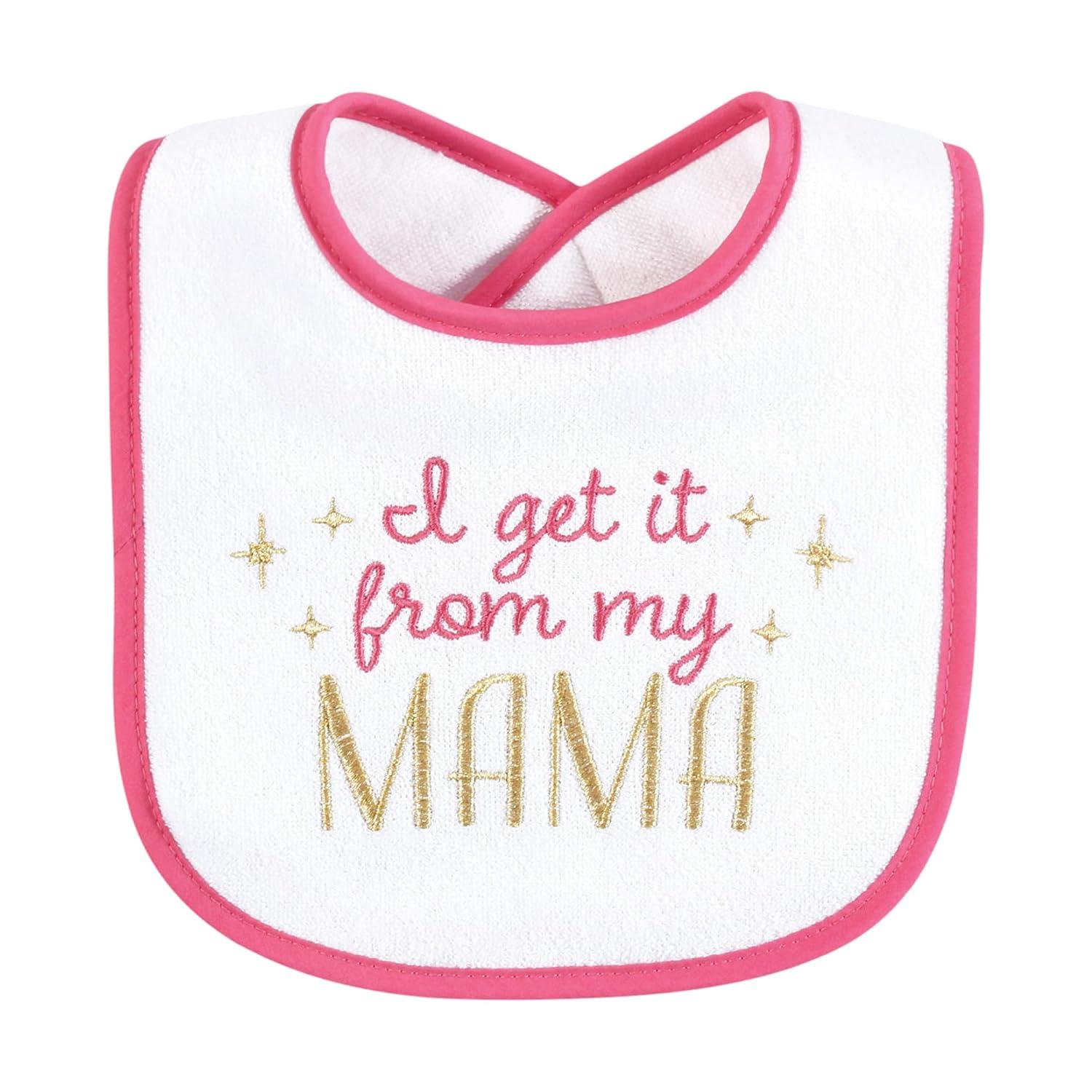 Hudson Baby Infant Girl Cotton Terry Drooler Bibs with Fiber Filling, Cutest Family, One Size(My Mama)