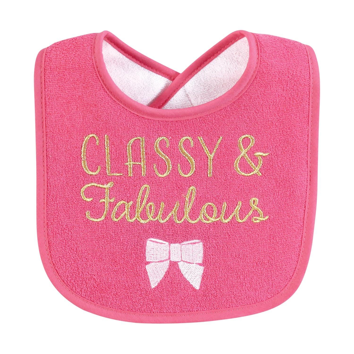 Hudson Baby drooler bibs are a great set of value bibs that absorb your baby's drools and spills. Our drooler bibs feature adorable sayings and embroideries on every bib while also having an absorbent, fiber filled inner to keep your little one's clothes clean. Made of cotton blend knit terry, our bibs are absorbent for the everyday mishaps you are bound to experience.