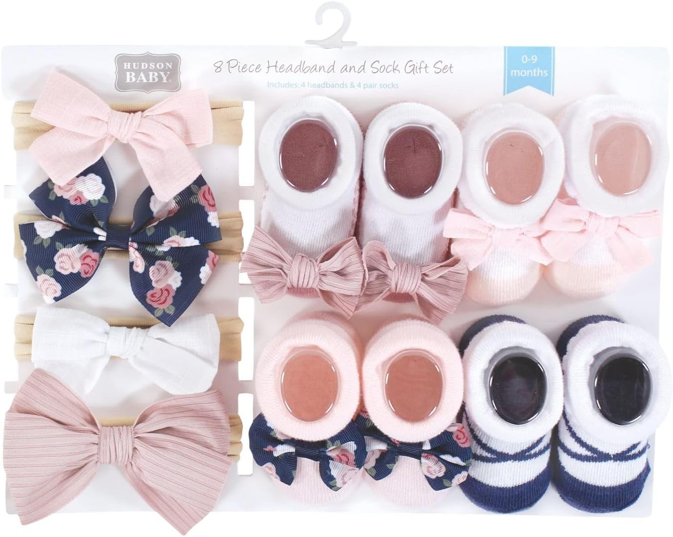 Hudson Baby socks and headband giftset is the perfect accessory set for your little one. Our giftset includes coordinating headbands and socks so your baby is looking fashionable from head to toe. Our headbands and socks are great for dressing up or everyday wear. Our giftset is packaged very nicely and makes a terrific baby shower gift.