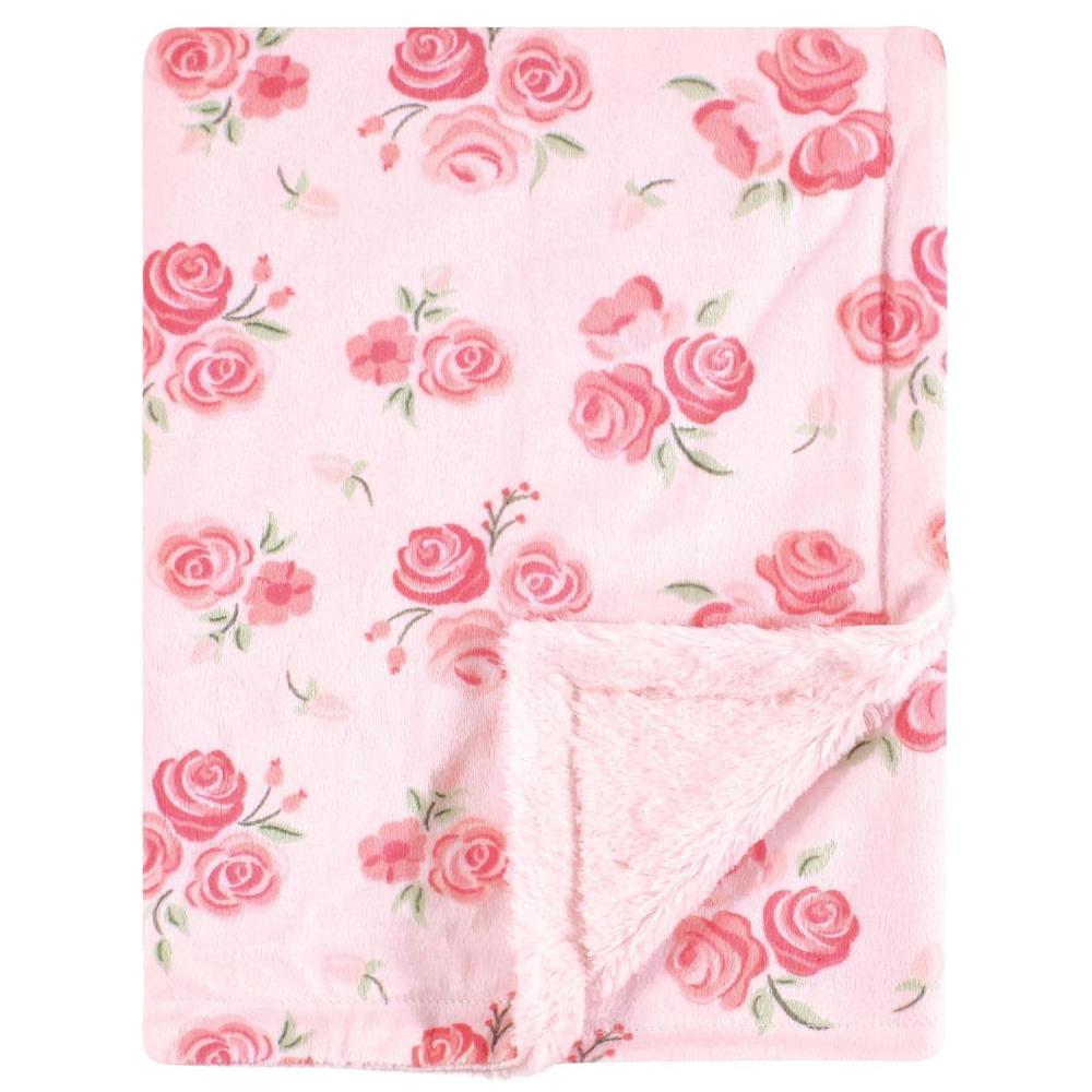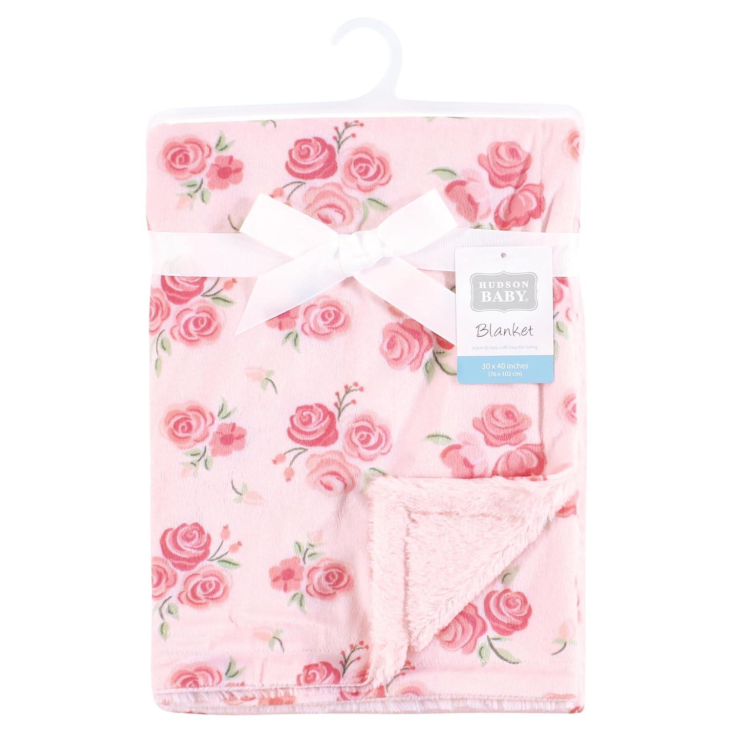 Hudson Baby Infant Girl Plush Blanket with Furry Binding and Back, Fairytale Princess, One Size(Blush Rose)