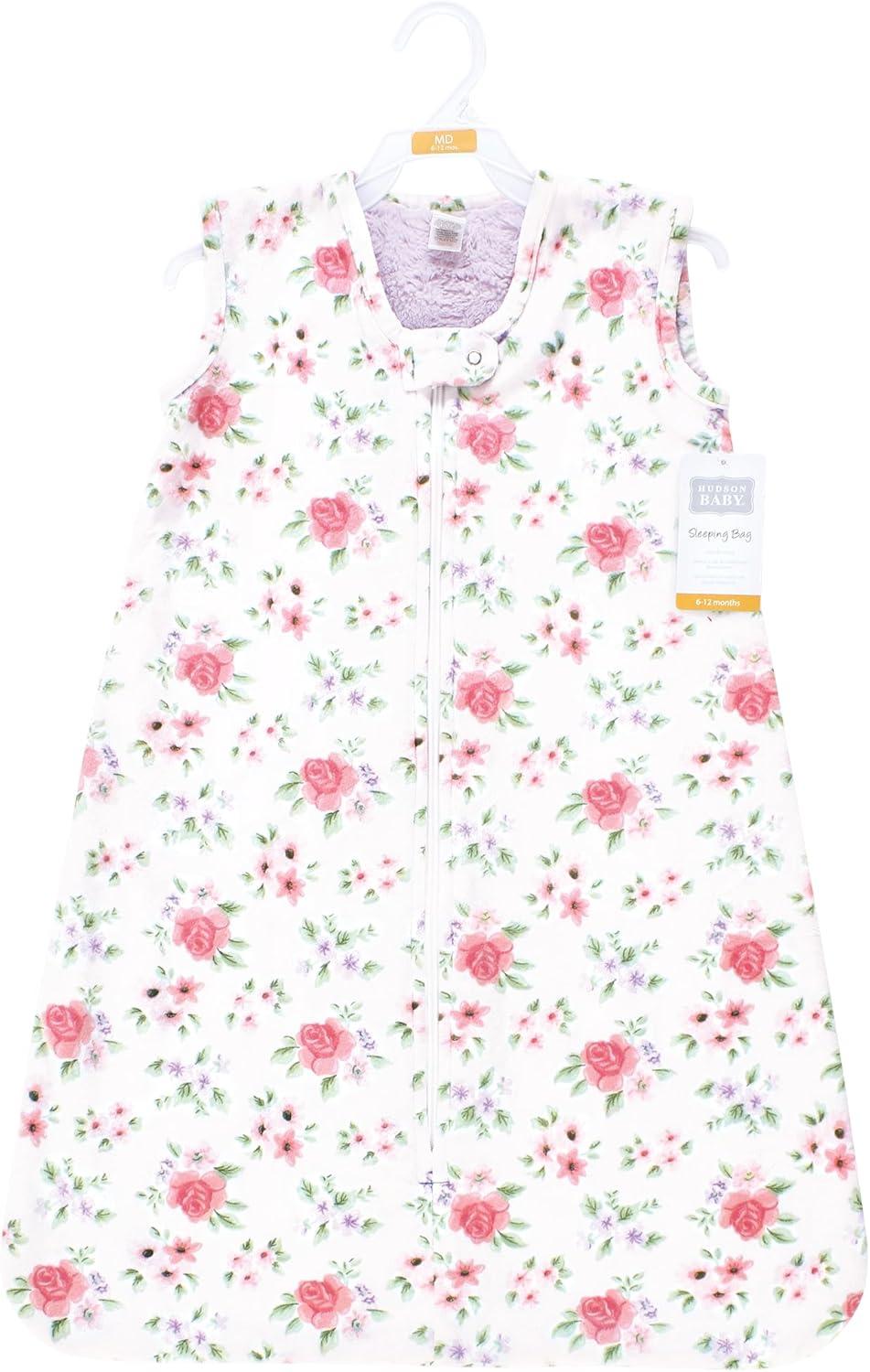 Hudson Baby Infant Girl Plush Faux Fur Sleeping Bag, Wearable Blanket, Vintage Floral, 0-6 Months