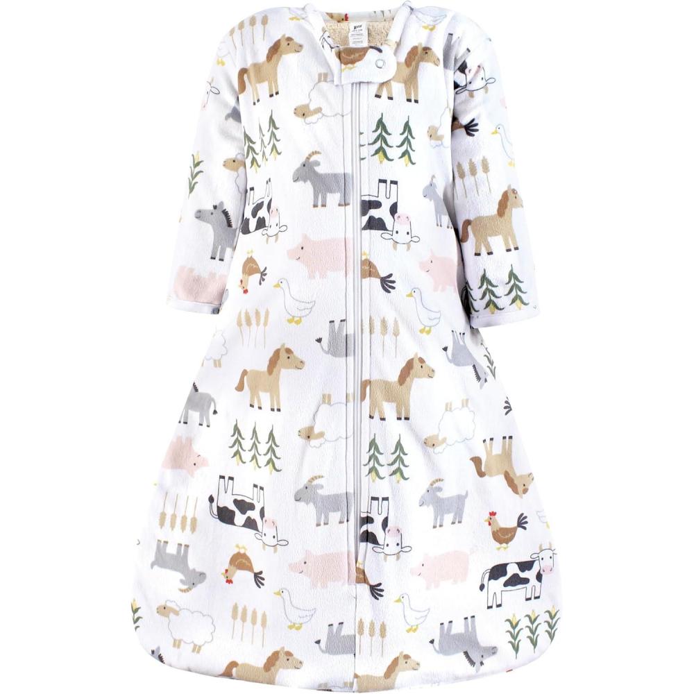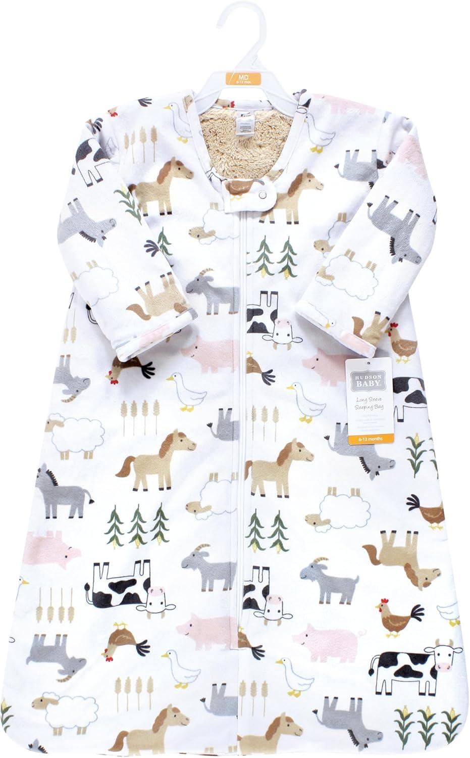 Hudson Baby Infant Girls Long Sleeve Plush Faux Fur Sleeping Bag, Wearable Blanket(Cute Farm)