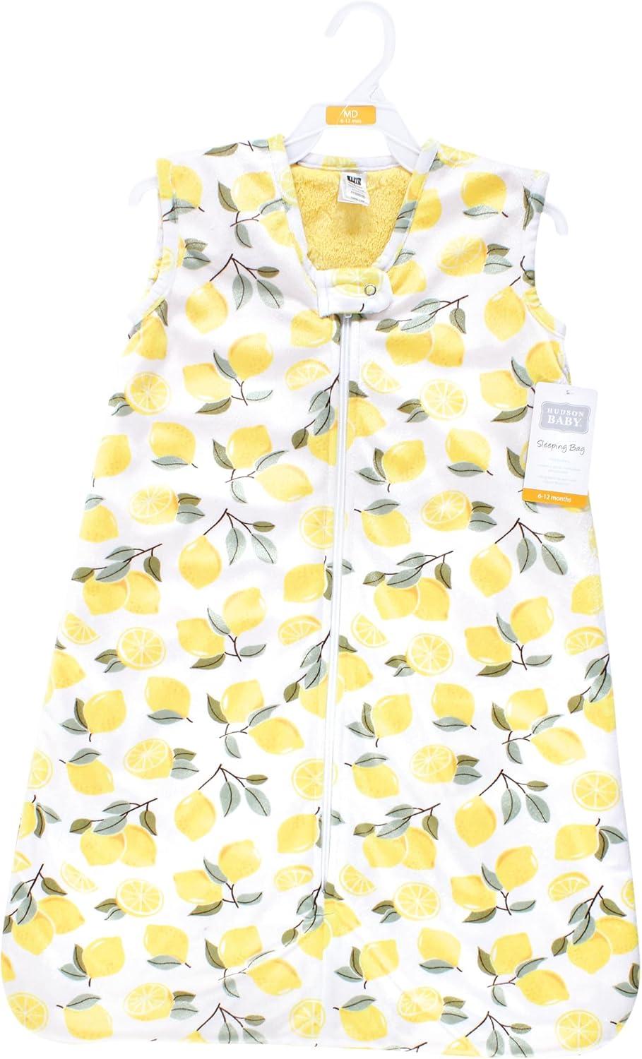 Hudson Baby Infant Girls Long Sleeve Plush Faux Fur Sleeping Bag, Wearable Blanket(Lemon)
