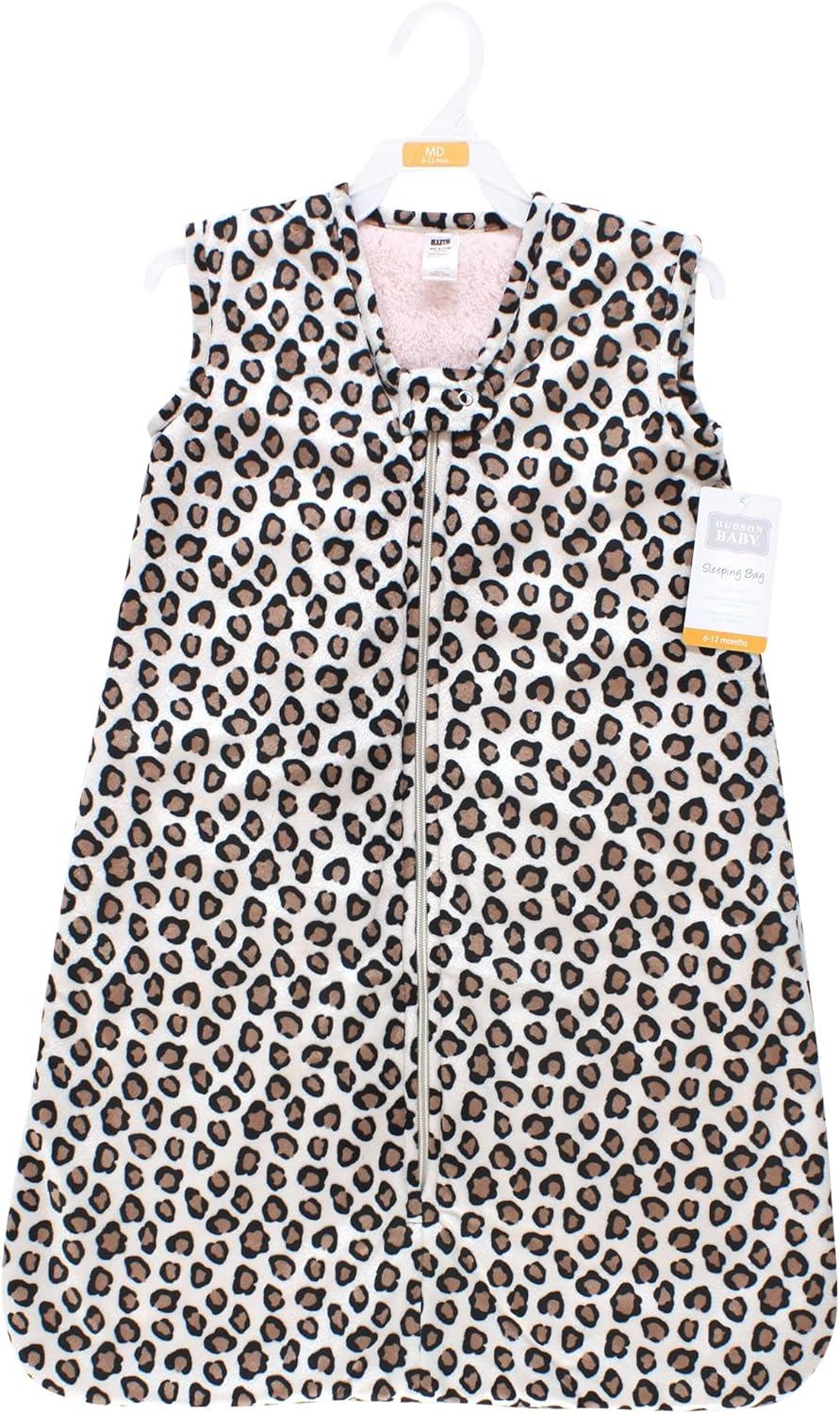 Hudson Baby Infant Girls Long Sleeve Plush Faux Fur Sleeping Bag, Wearable Blanket(Leopard Pink)