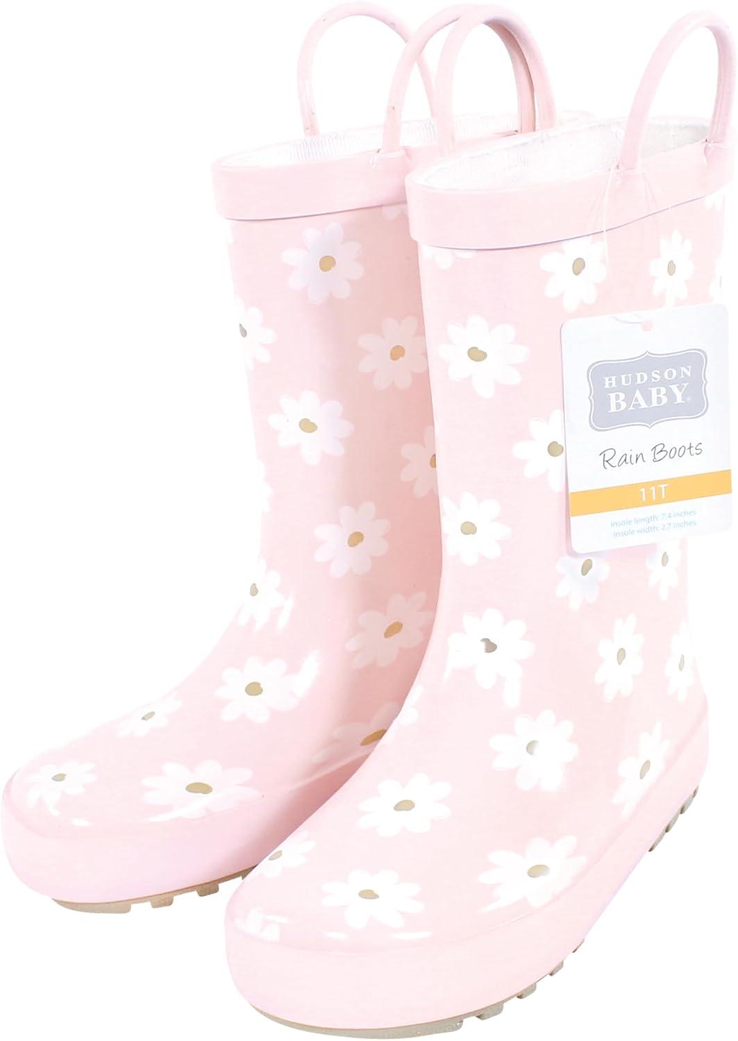 Keep your child's feet dry and comfortable all year round with our adorable Hudson Baby Kids Rainboots! These boots are 100% waterproof, featuring a streamlined design that keeps water out, no matter how big the puddles are. The soft, flexible PVC material allows kids to run, skip, and jump without feeling stiff or constrained. Here are some of the features that parents love: Waterproof construction keeps feet dry in rain, snow, and mud, 100% rubber upper is durable and easy to clean, Flexible outsole provides traction and support on any terrain, 2 pull-on loops make it easy for kids to put on and take off their boots, Available in a variety of colors to suit your child's personality. Customers love these boots for their: Color – Available in a variety of bright and cheerful colors. Water resistance – Keeps feet dry in even the heaviest rain. Fit and comfort – The boots are designed to be comfortable and easy to wear. Durability – The boots are made from high-quality materials that can withstand wear and tear. These boots are perfect for rainy days, muddy trails, hiking, camping, playing in puddles and much more!