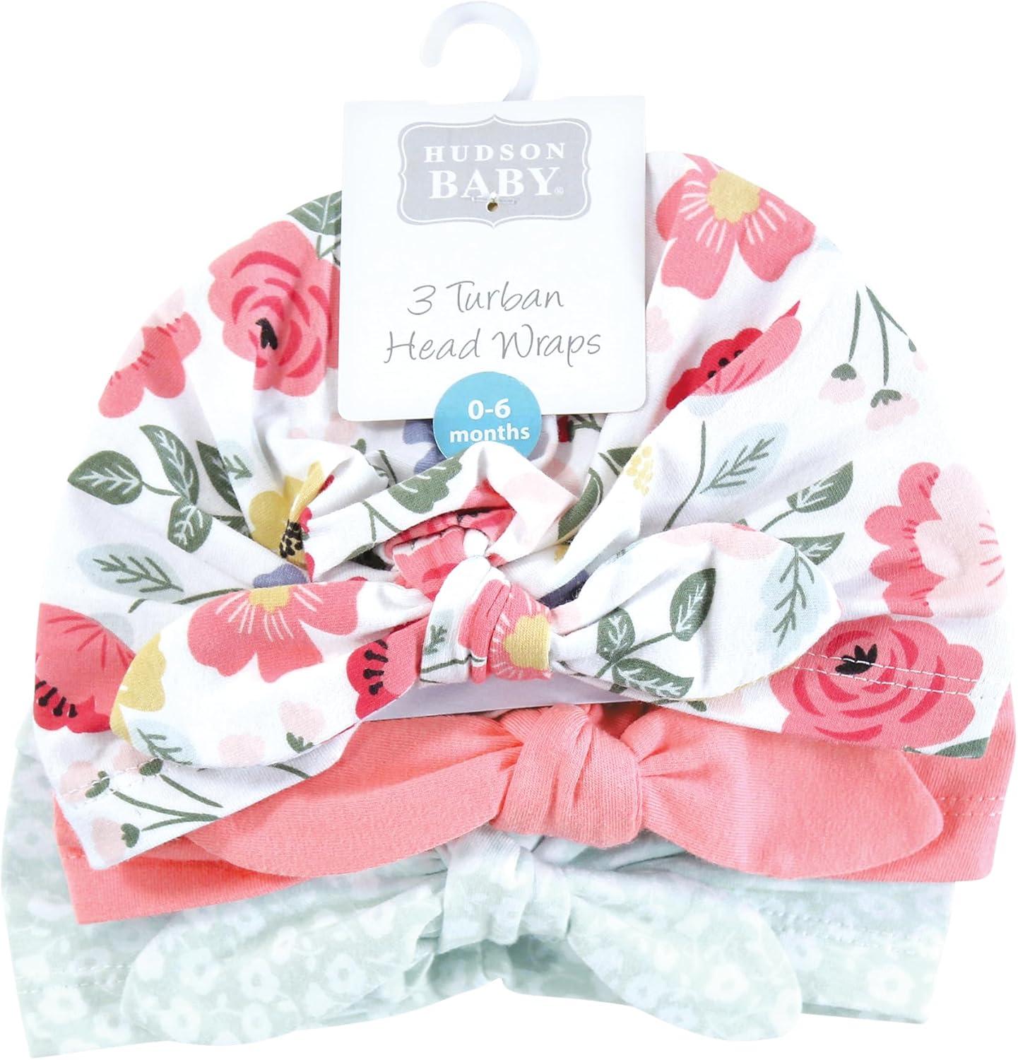 Hudson Baby Infant Girls Turban Cotton Headwraps, 0-24 Months(Modern Floral)