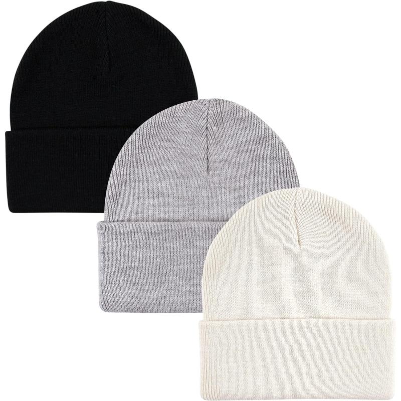 Hudson Baby Knit Cuffed Beanie 3pk(Cream Black)