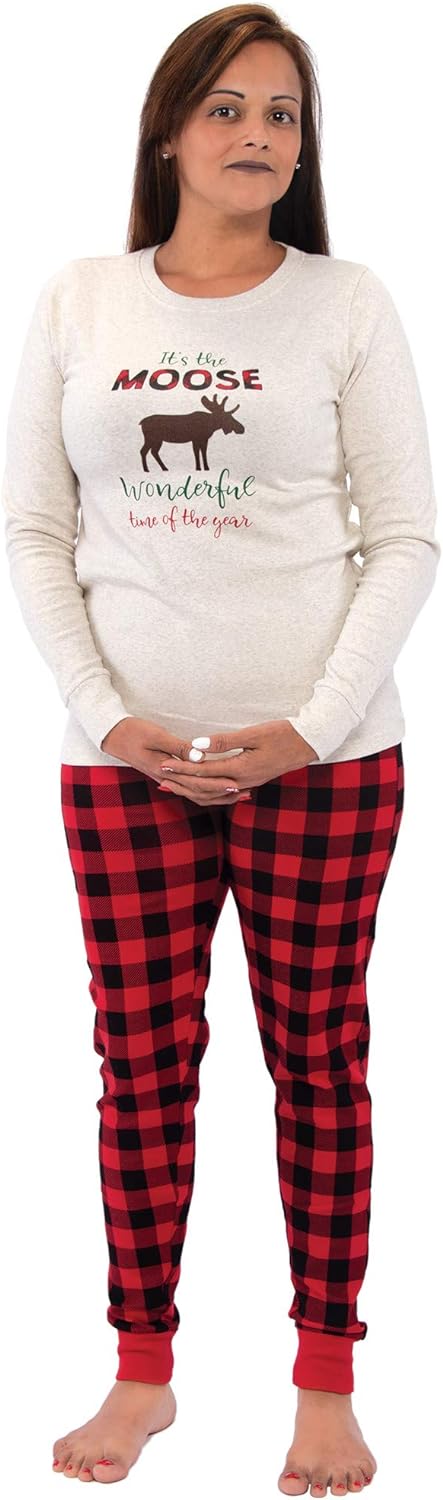 Hudson Baby Matching Holiday Family Pajamas(Womens Moose Wonderful Time)