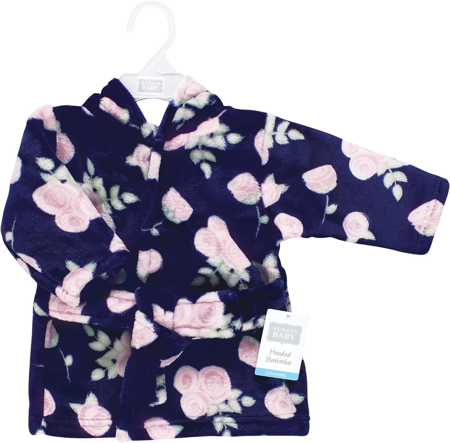 Hudson Baby Plush Animal Face Bathrobe Unisex Baby(Navy Rose)