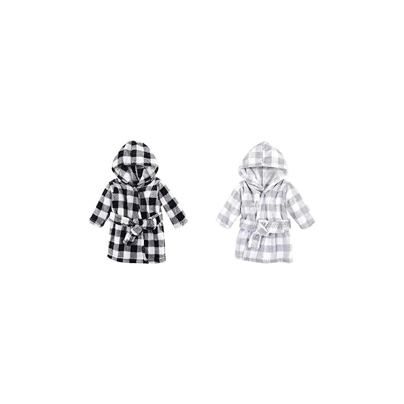 Hudson Baby Plush Animal Face Robes, Giraffe and Blue Elephant(Black Plaid Gray Plaid One Size)