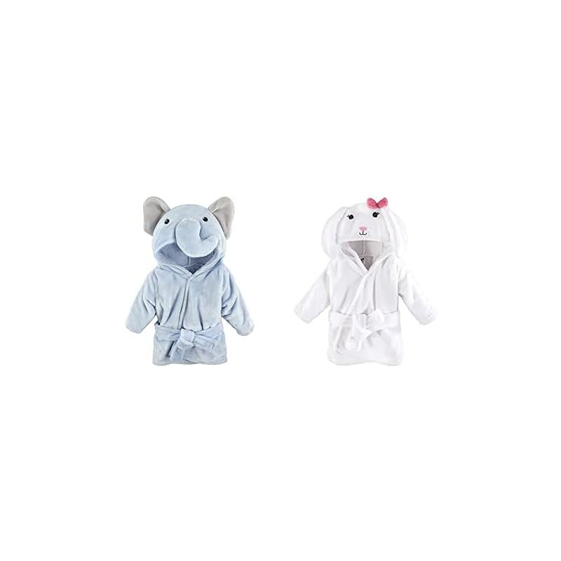 Hudson Baby Plush Animal Face Robes, Giraffe and Blue Elephant(Blue Elephant Bunny One Size)