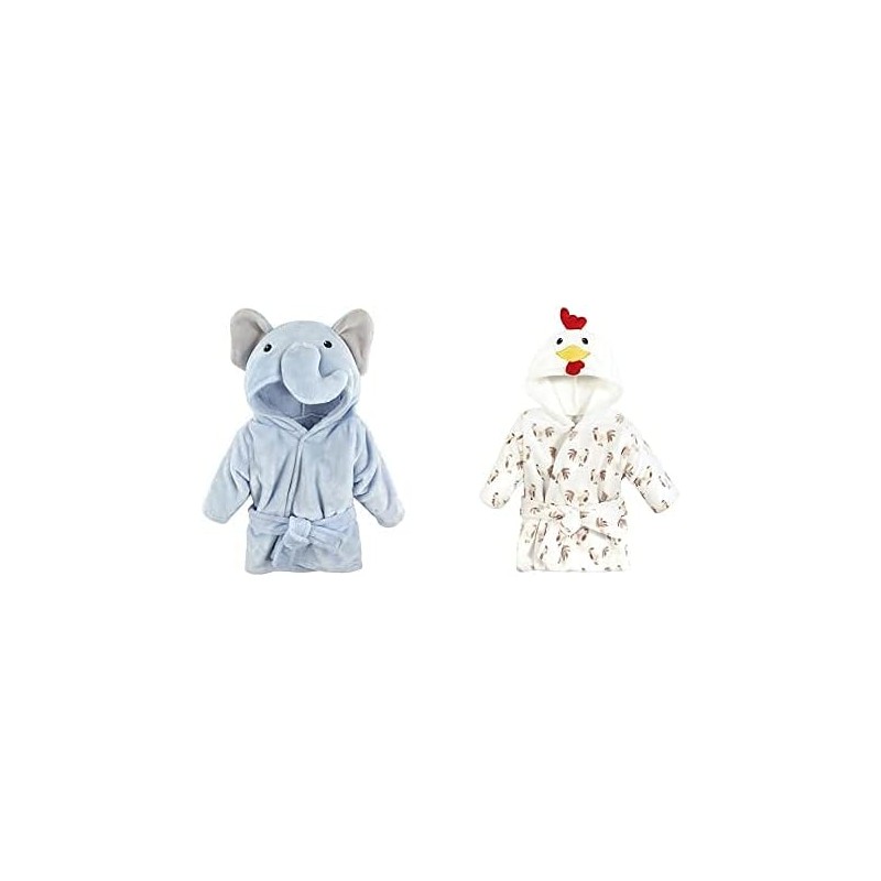 Hudson Baby Plush Animal Face Robes, Giraffe and Blue Elephant(Blue Elephant Rooster One Size)