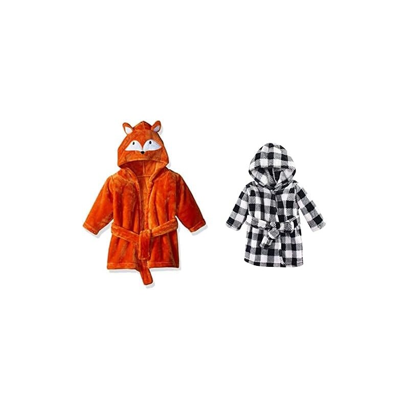 Hudson Baby Plush Animal Face Robes, Giraffe and Blue Elephant(Fox Black Plaid One Size)