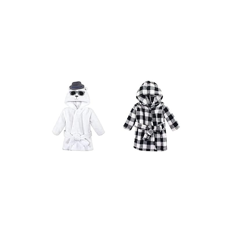 Hudson Baby Plush Animal Face Robes, Giraffe and Blue Elephant(Handsome Bear Black Plaid One Size)