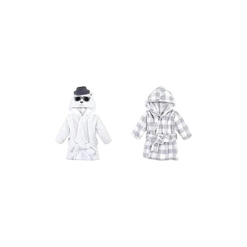 Hudson Baby Plush Animal Face Robes, Giraffe and Blue Elephant(Handsome Bear Gray Plaid One Size)