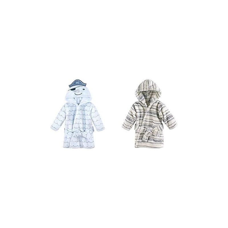 Hudson Baby Plush Animal Face Robes, Giraffe and Blue Elephant(Narwhal Aztec One Size)