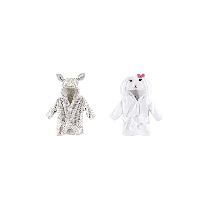 Hudson Baby Plush Animal Face Robes, Giraffe and Blue Elephant(Zebra Bunny One Size)