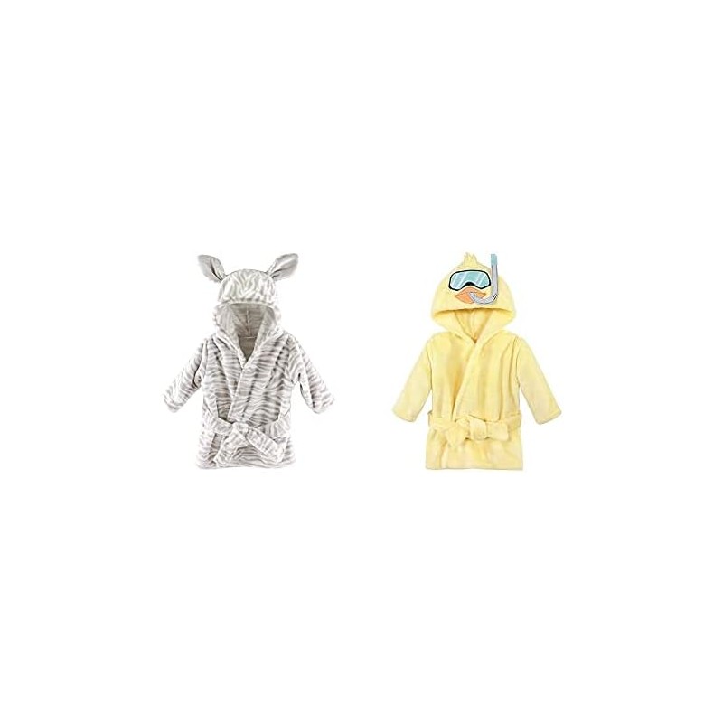 Hudson Baby Plush Animal Face Robes, Giraffe and Blue Elephant(Zebra Scuba Duck One Size)