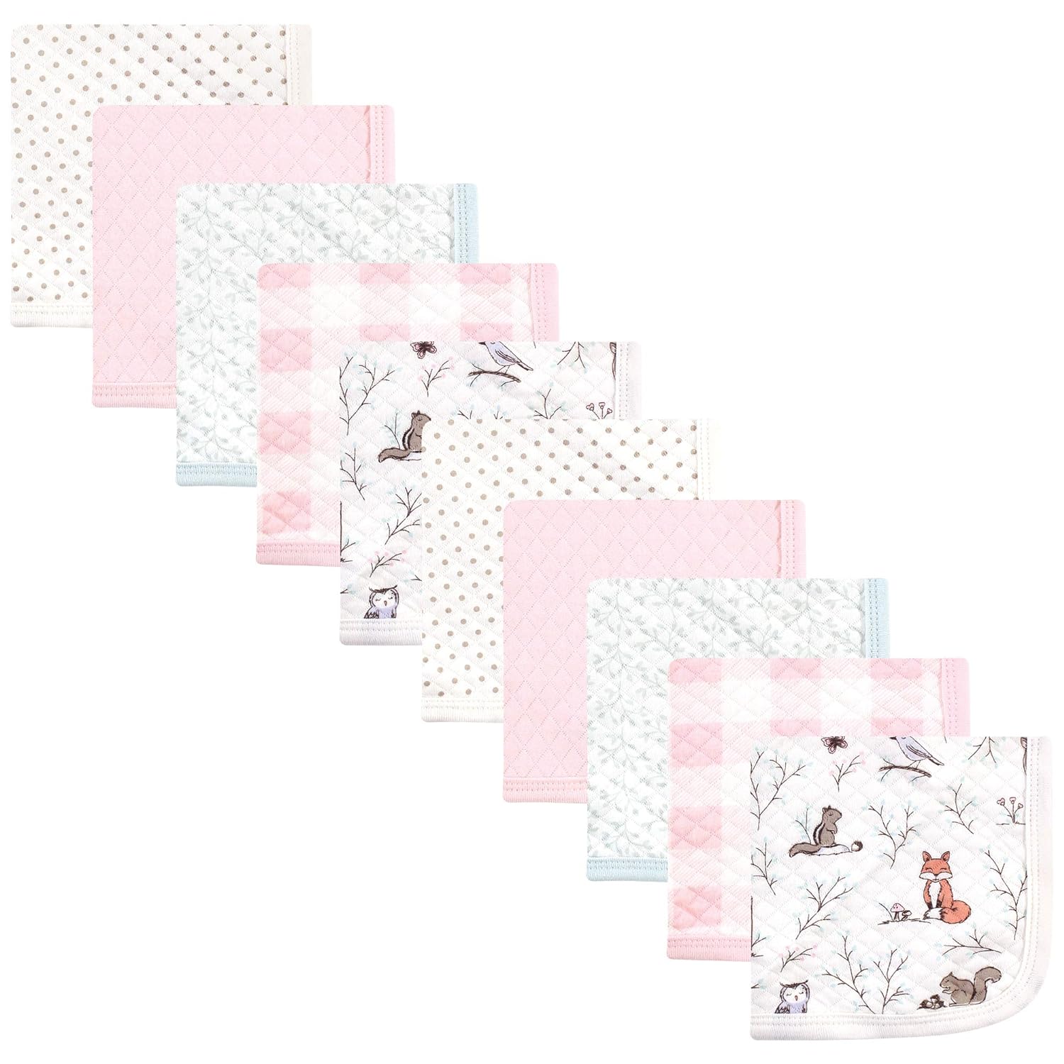 Hudson Baby quilted cotton washcloths are the softest, most comfortable washcloths. Our washcloths make bath time and clean ups easy and convenient. Our wash cloths are versatile and can be used for almost anything from wiping up spills and spit up to bathing your little one. Binding on washcloths prevents fraying so they stay durable wash after wash. Our washcloths are great to use in the kitchen, bath and when traveling.