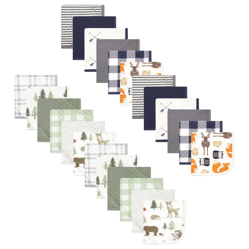 Hudson Baby Unisex Baby 24Pc Quilted Cotton Washcloths, Boy Forest, One Size(Hudson Baby Unisex Baby 24Pc Quilted Cotton Washcloths, Boy Forest, One Size)