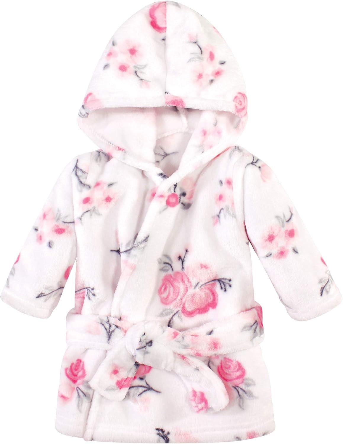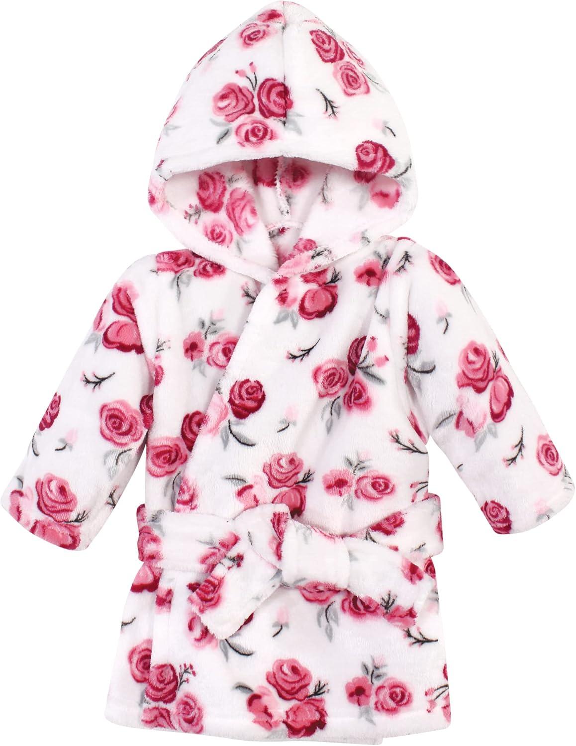 Hudson Baby unisex-baby 2pc Plush Animal Face Bathrobe(Pink Floral Floral)