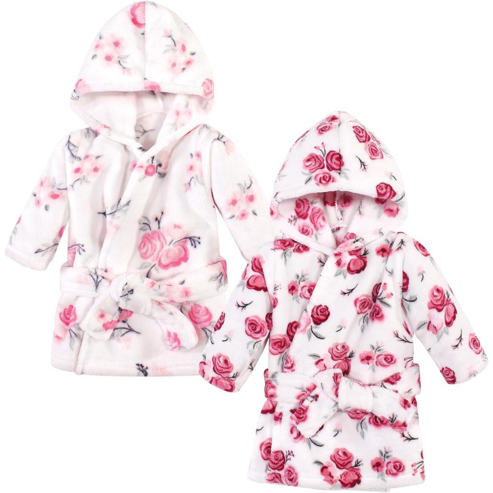 imageHudson Baby unisexbaby 2pc Plush Animal Face BathrobePink Floral Floral