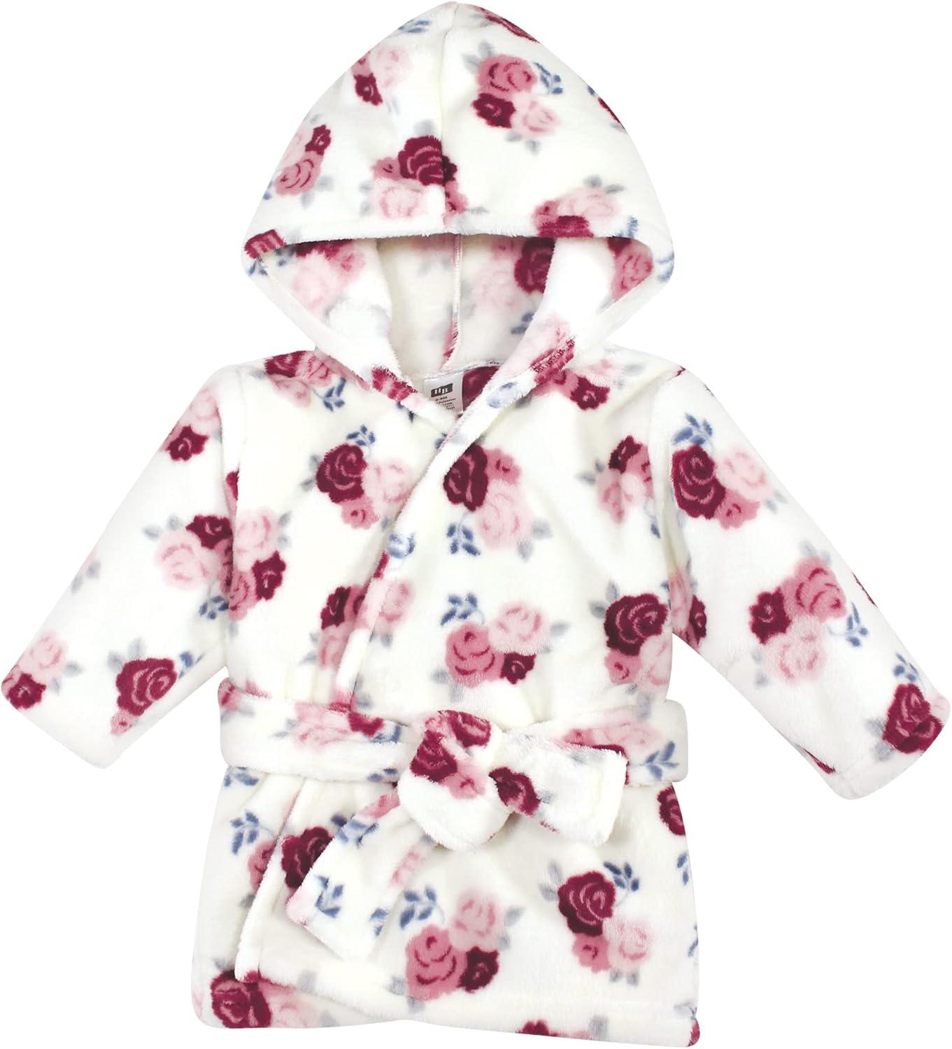 Hudson Baby unisex-baby 2pc Plush Animal Face Bathrobe(Rose Floral)