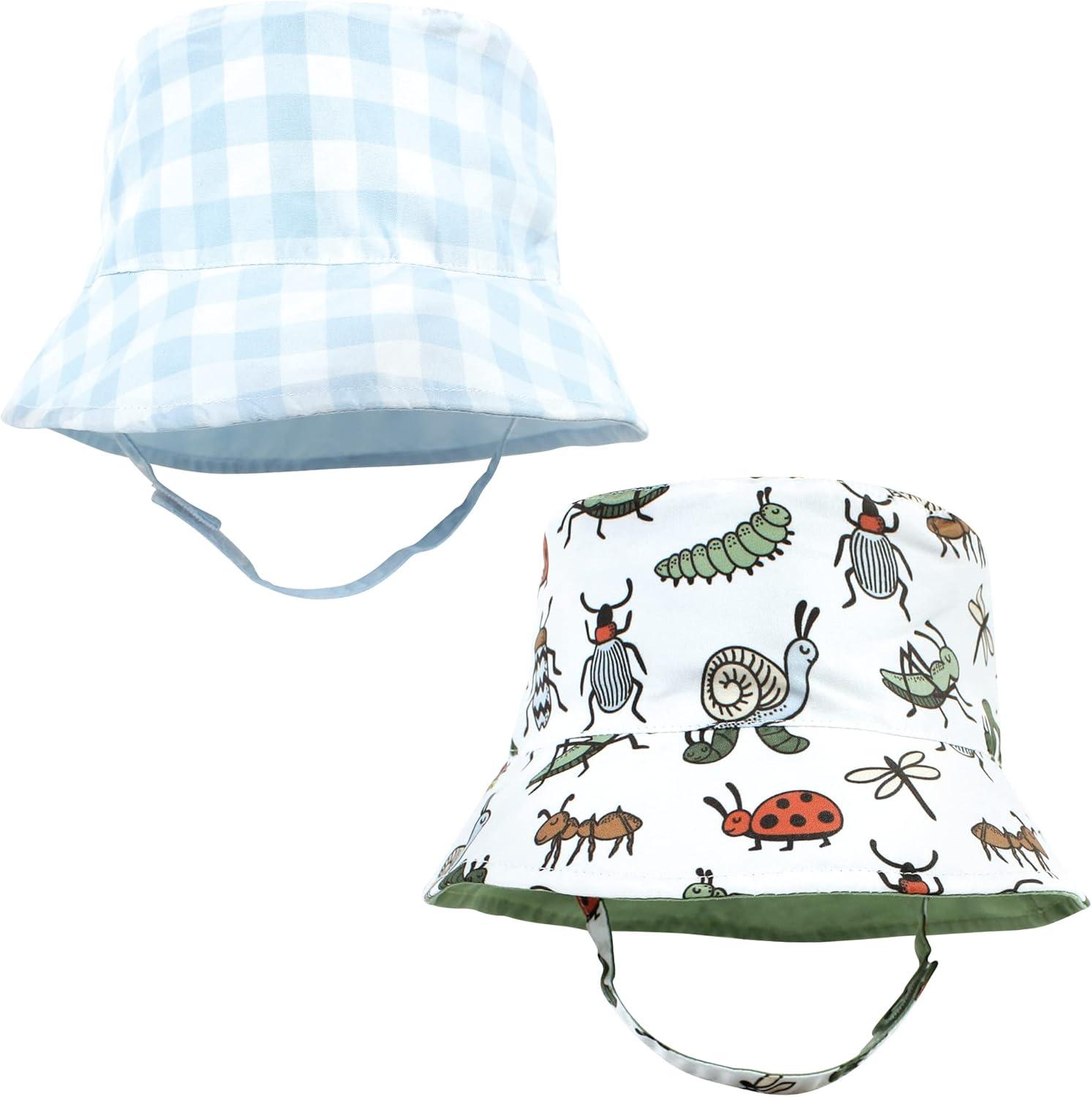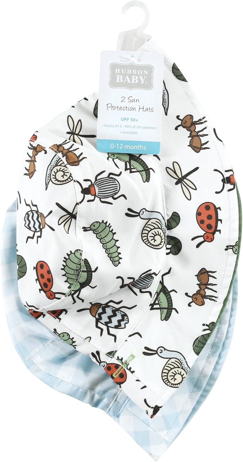 Hudson Baby sun protection hat protects your baby and toddler's head, neck, and eyes while playing in the sun and enjoying the outdoors. The tie strap keep the hat secure on your little one's head with the adjustable toggle allowing for a customizable fit! Our wicking liner is breathable for comfort and the UPF 50+ material dries quickly if it gets wet to support baby’s active play. Parents love how easy it is to pack for on-the-go activities. Available in a wide variety of prints and patterns.