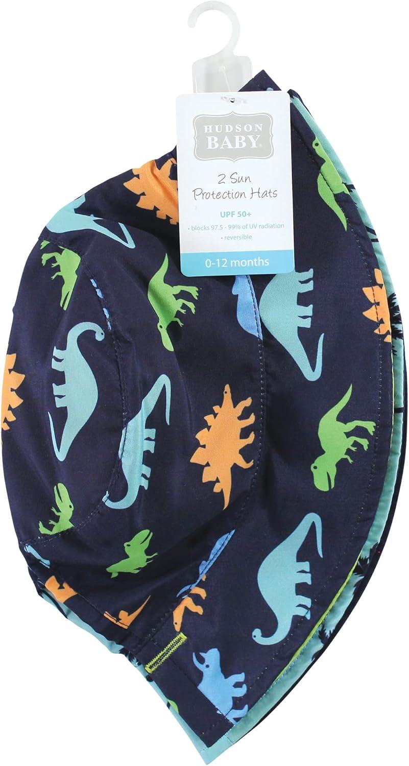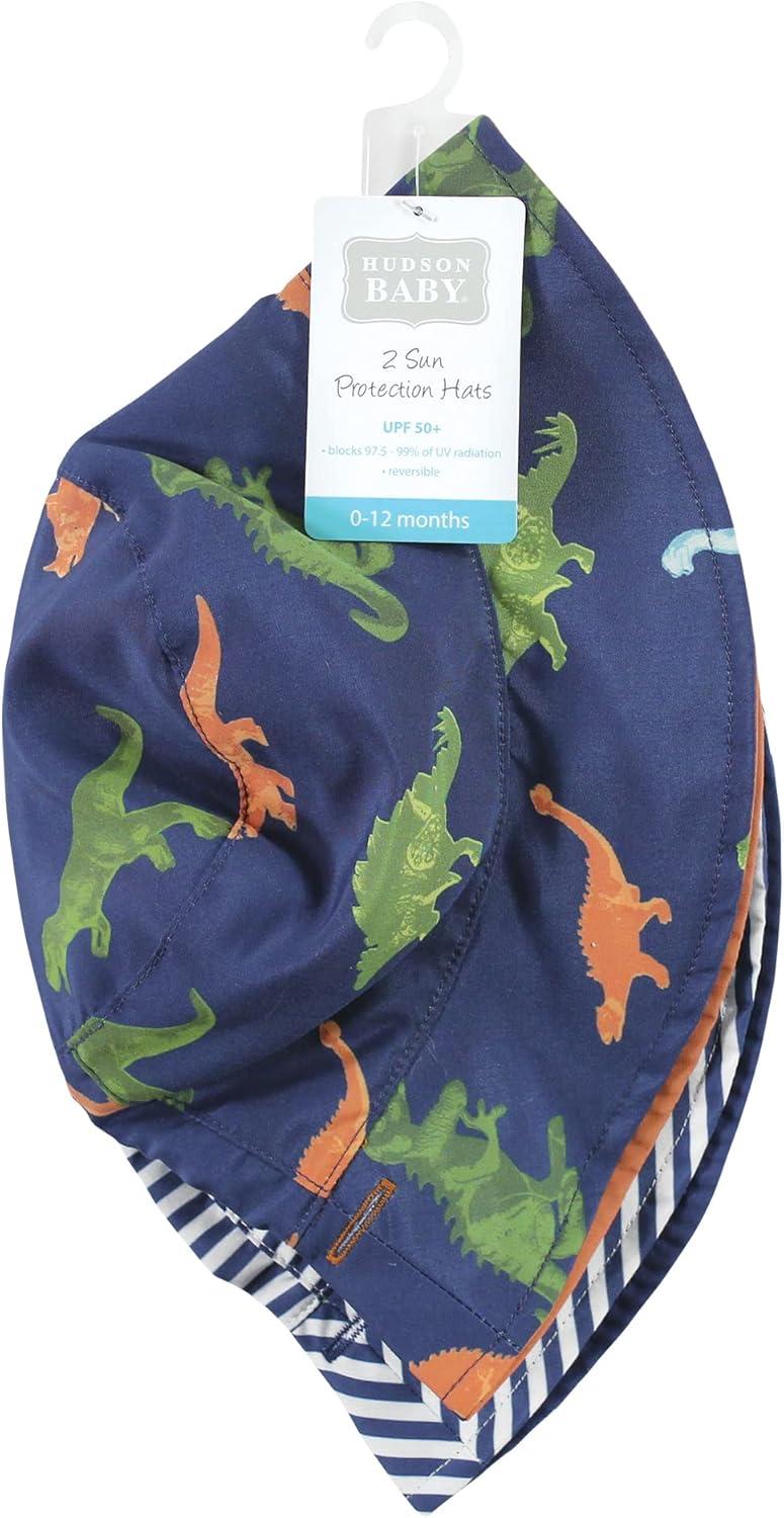 imageHudson Baby Unisex Baby 4Pc Sun Protection Hat Dino Stripe Dinosaur Palm Tree 1224 MonthsCritters Plaid Sea Turtle Stripe