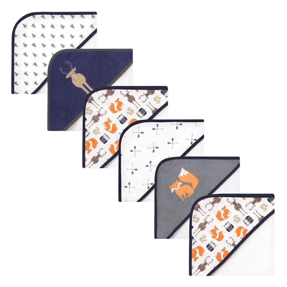 Hudson Baby Unisex Baby 6Pc Cotton Rich Hooded Towels Bundle Set, Orange Fox Fox, One Size(Blue Moose Fox)
