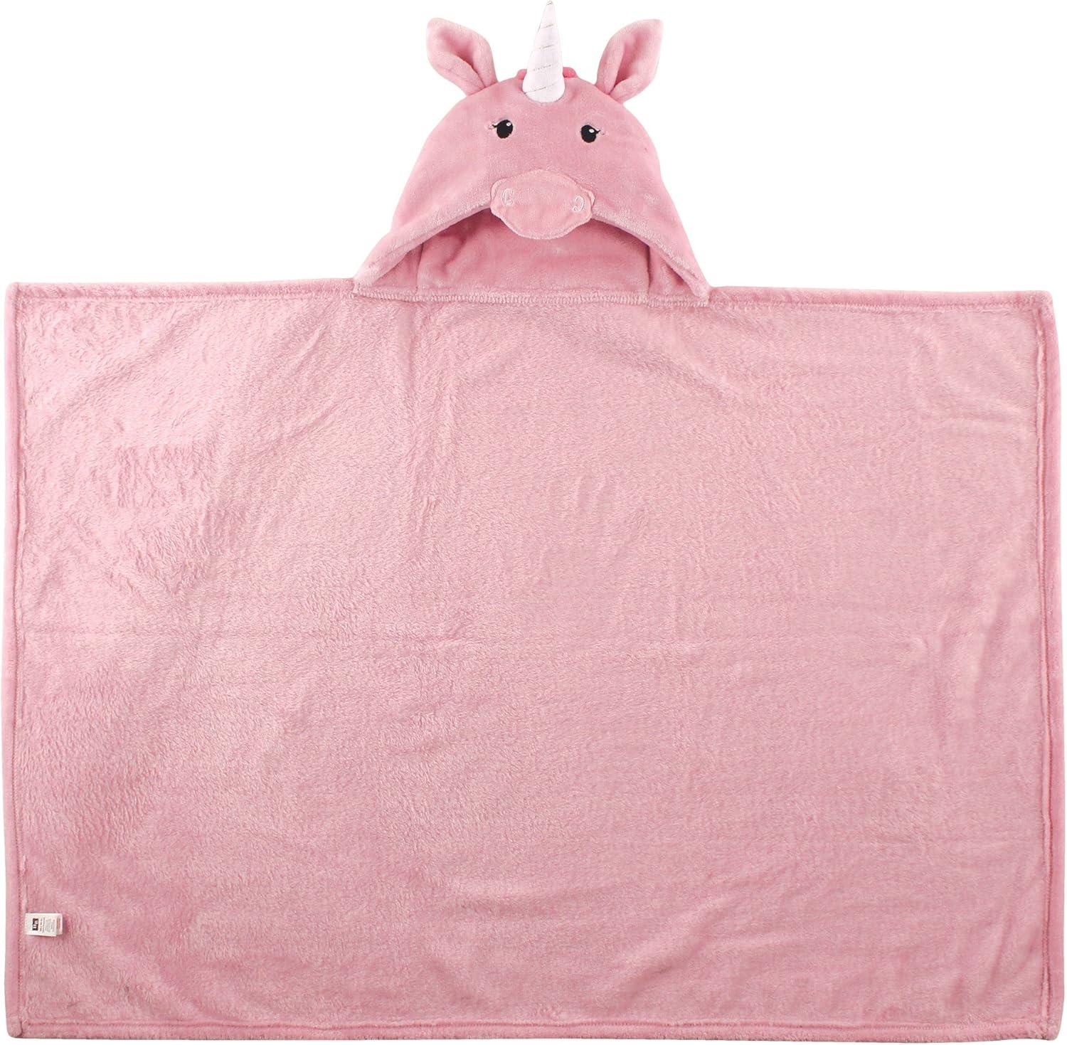 Hudson Baby Unisex Baby and Toddler Hooded Animal Face Plush Blanket, Orange Fox, One Size(Pink Unicorn)