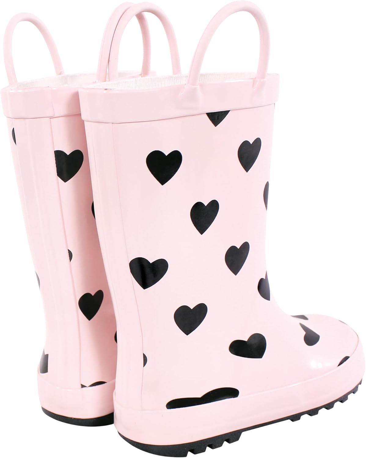 Hudson Baby Unisex Baby and Toddler Rain Boots(Pink Black Heart)