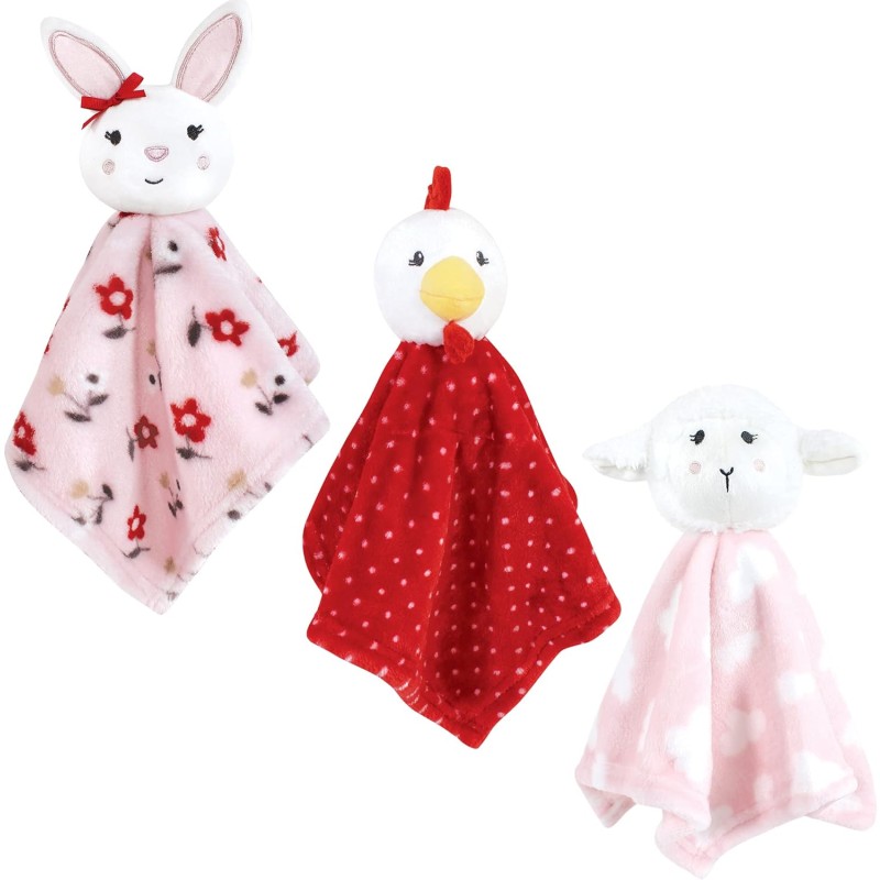 Hudson Baby animal face security blanket will keep baby calm and content with their favorite animal friend. Our security blanket features super soft and luxurious fabric, with a fun animal creature to play and snuggle to their little heart's desire. Our security blanket will surely become a baby favorite.