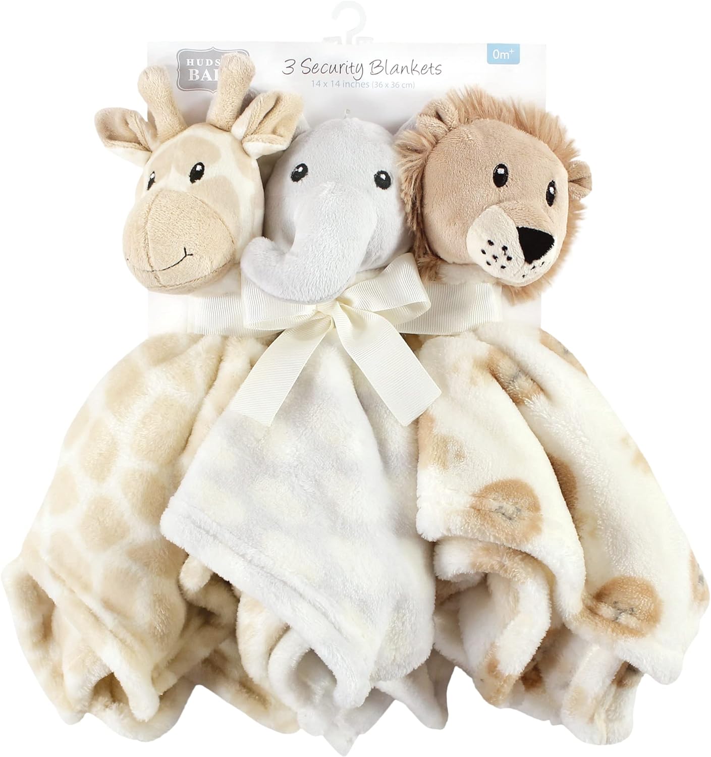 Hudson Baby animal face security blanket will keep baby calm and content with their favorite animal friend. Our security blanket features super soft and luxurious fabric, with a fun animal creature to play and snuggle to their little heart's desire. Our security blanket will surely become a baby favorite.