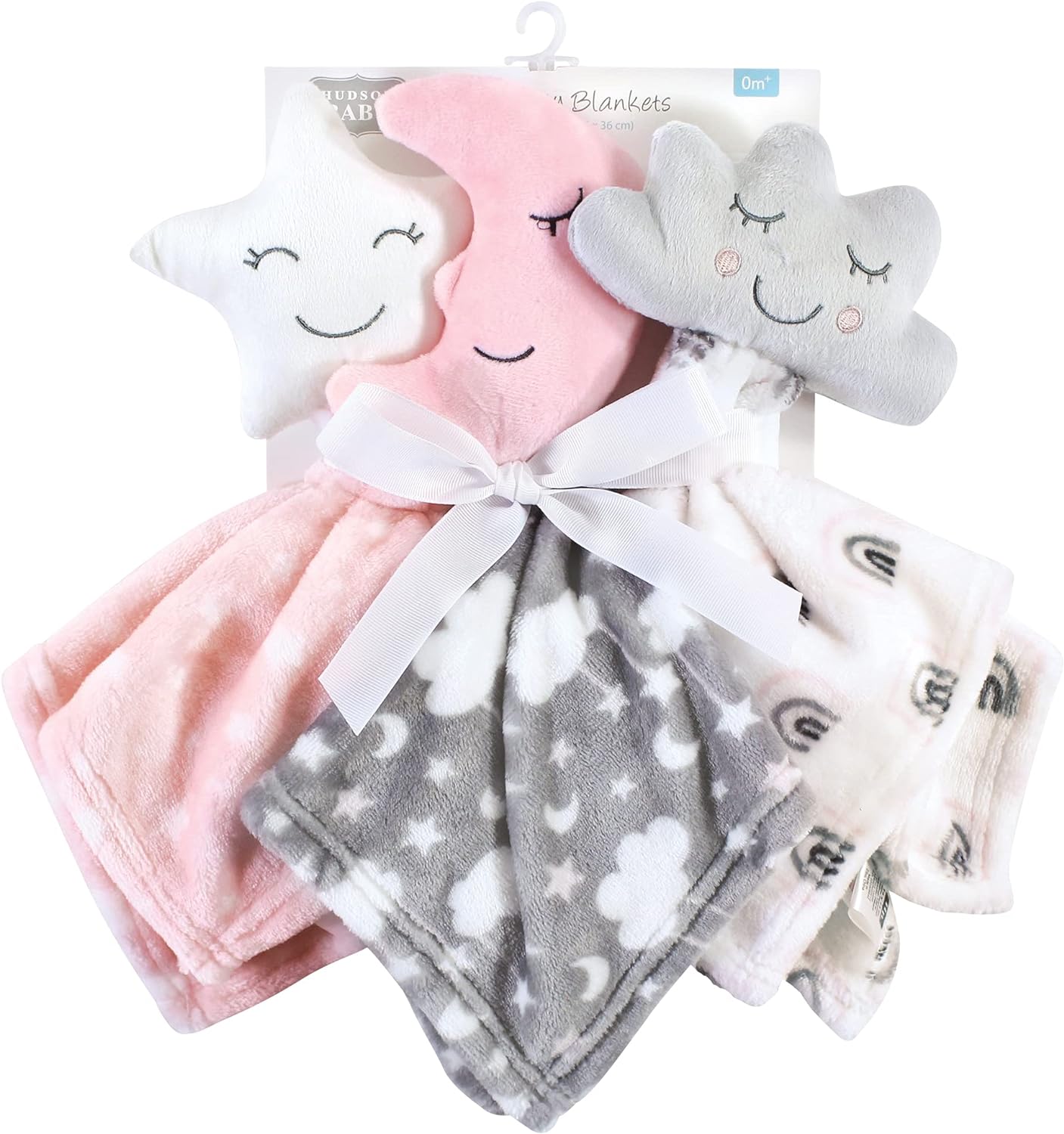 Hudson Baby animal face security blanket will keep baby calm and content with their favorite animal friend. Our security blanket features super soft and luxurious fabric, with a fun animal creature to play and snuggle to their little heart's desire. Our security blanket will surely become a baby favorite.