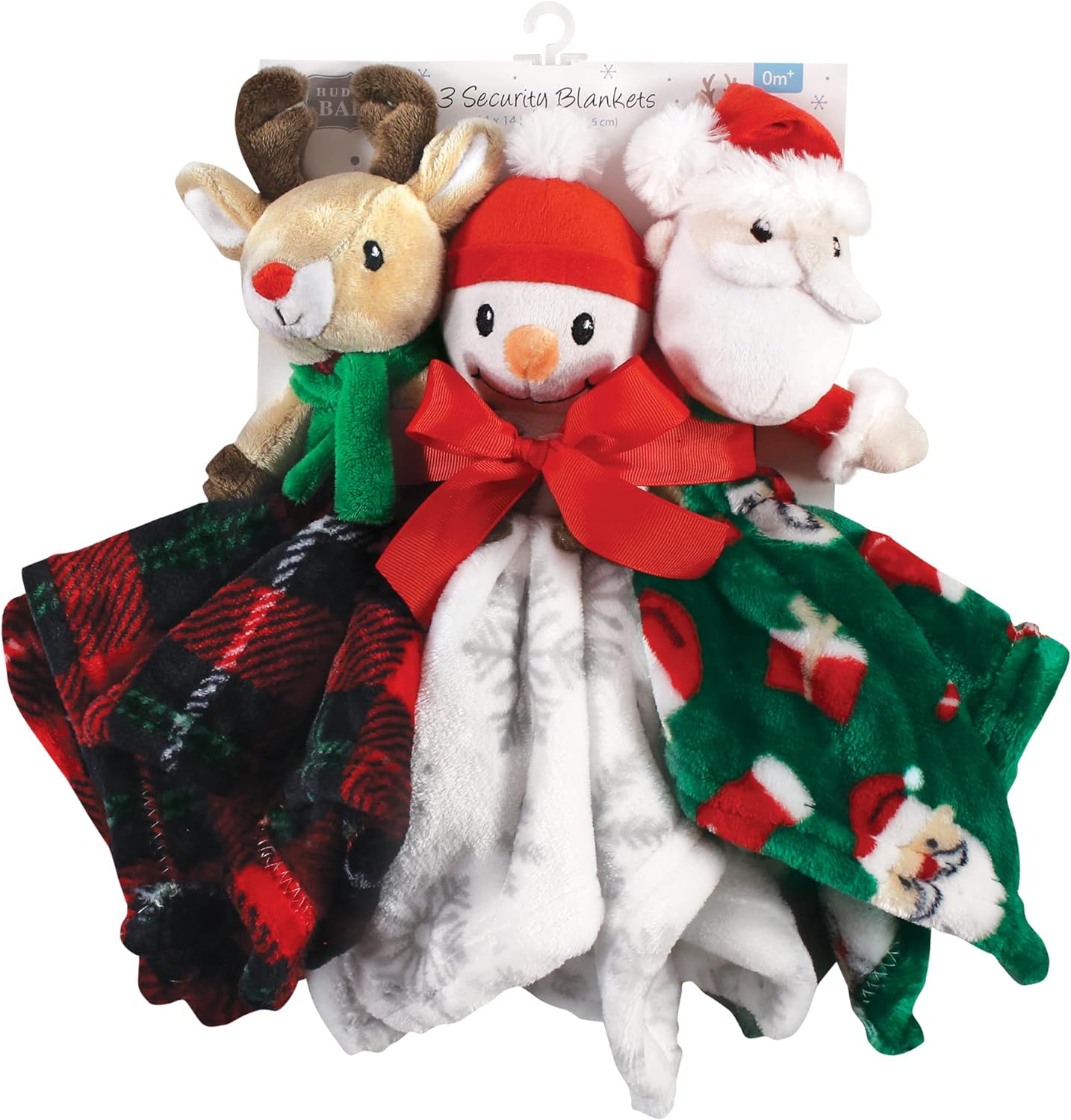 Hudson Baby Unisex Baby Animal Face Security Blanket, Girl Holiday Reindeer, One Size(White Snowman One Size)