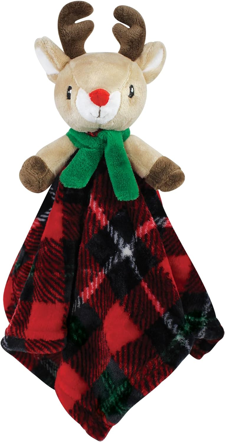 Hudson Baby Unisex Baby Animal Face Security Blanket, Girl Holiday Reindeer, One Size(Safari Girl One Size)