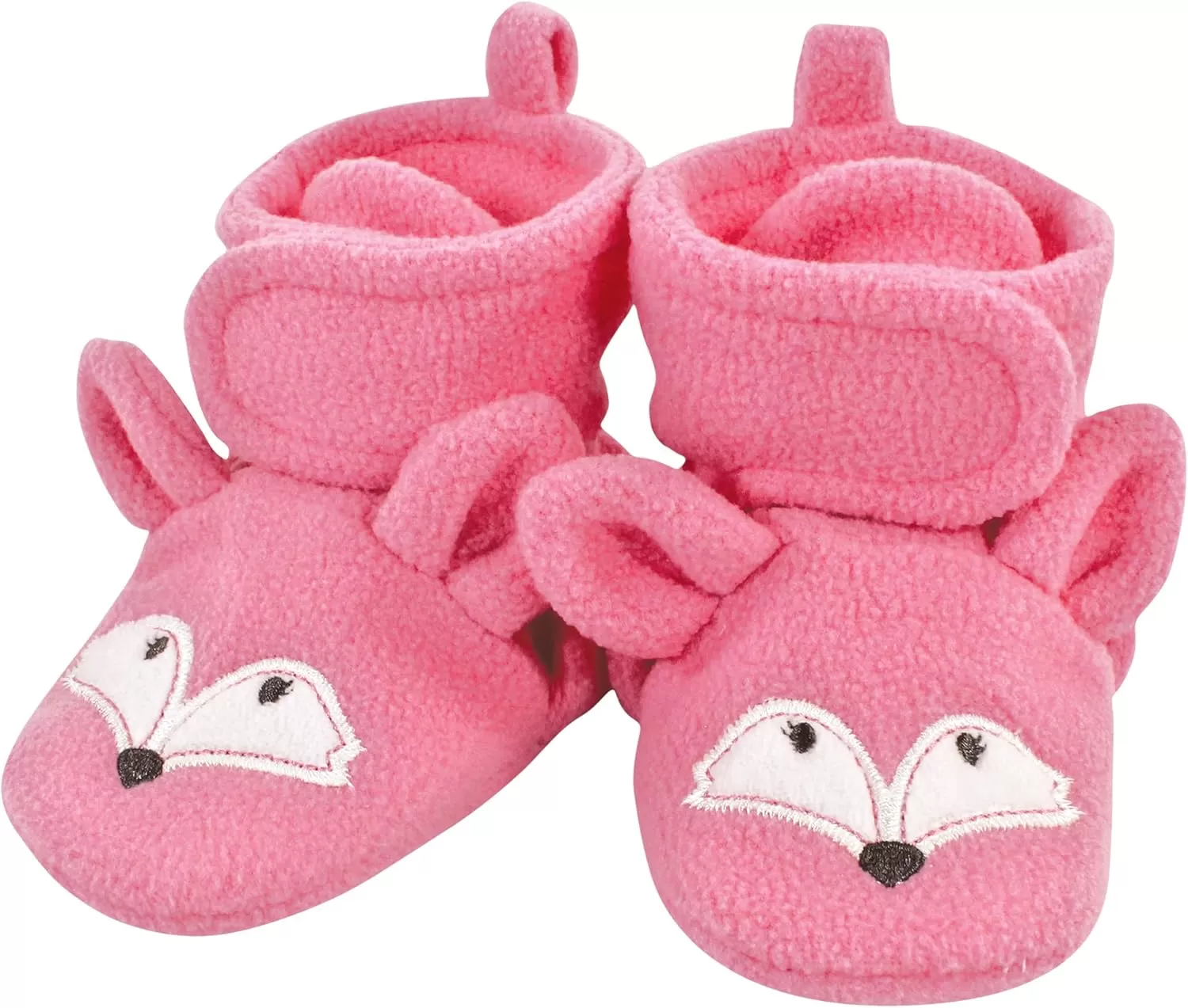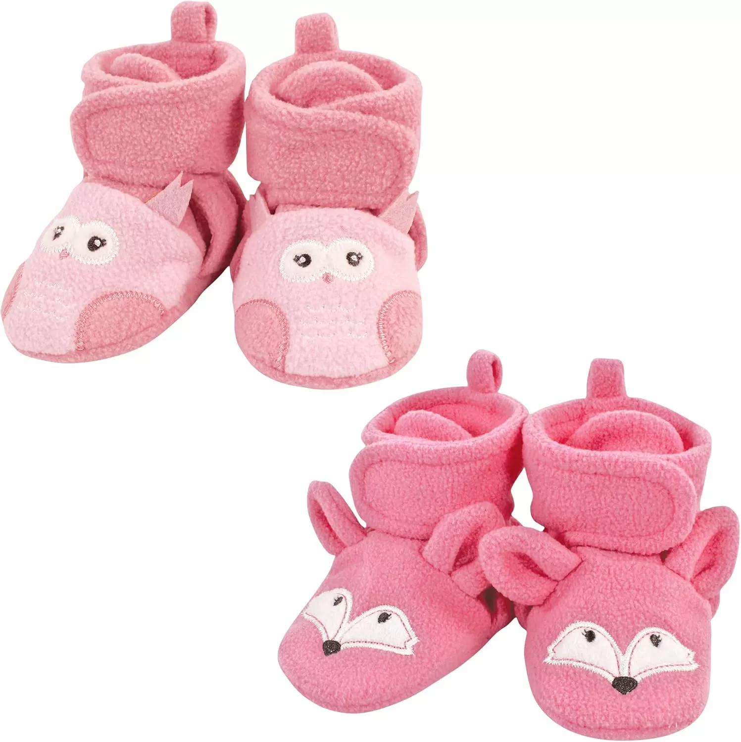 Hudson Baby Unisex Baby Animal Fleece Booties 2-Pack(Pink Owl Fox)