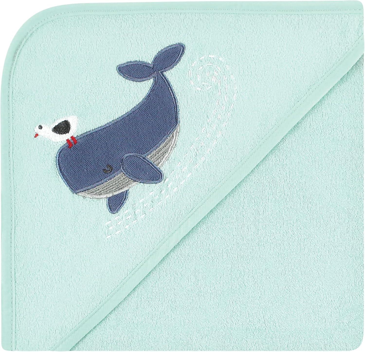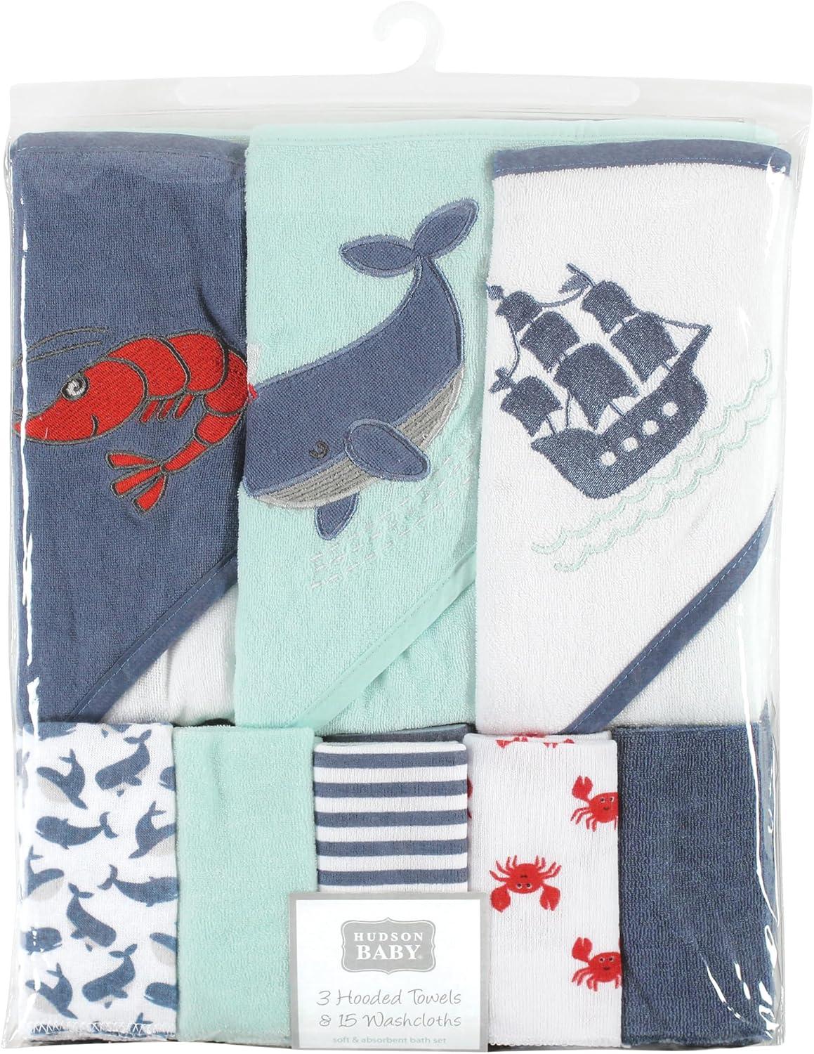 Hudson Baby Unisex Baby Animal Hooded Towel 3pk and 15 Washcloths, Unicorn, One Size(Whale)