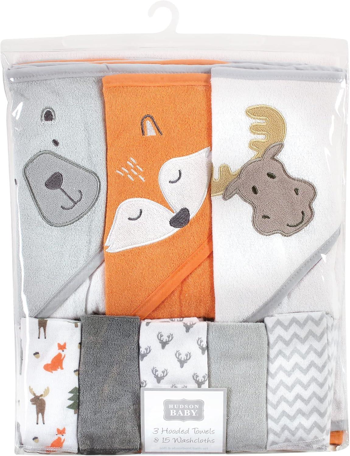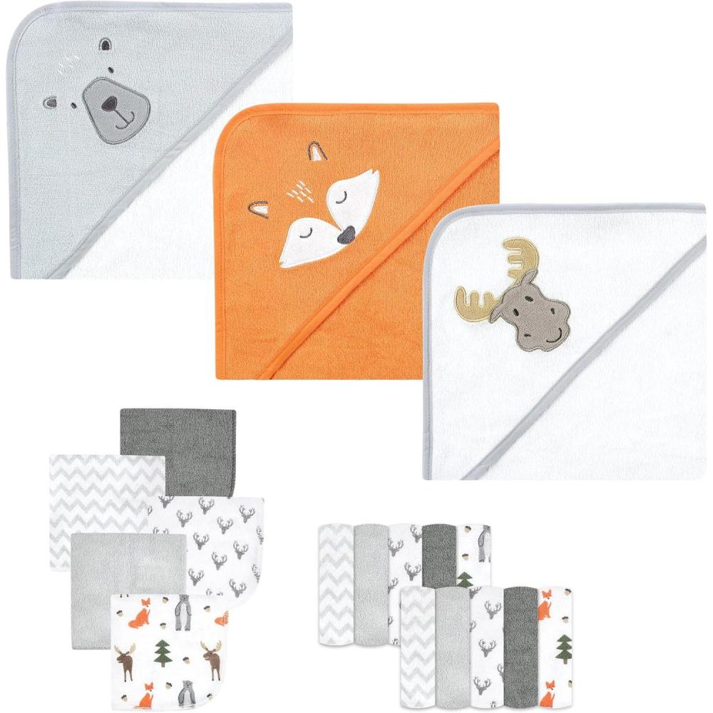 Hudson Baby hooded towel and washcloths set are a comfortable and cozy bathset to make bath time more fun for your little one and convenient for you. Featuring fifteen washcloths and three hooded towel, our bathset features all your essentials in one easy to purchase set.